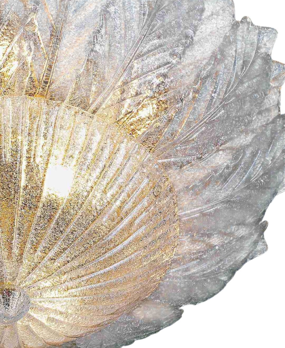 Bu Murano cam tavan lambasının işçiliği tamamen el işçiliğiyle gerçekleştirilmiştir; ustalar, her bir parçaya şekil ve boyut vererek, cam kumtaşıyla birleştirerek tavan lambasına değer katmaktadır. Tavan lambasının içindeki metal yapı altın rengindedir ve fotoğraftaki gibi dekoratif bir etki yaratmak için her bir parçaya ayrı ayrı yapraklar eklenmiştir.