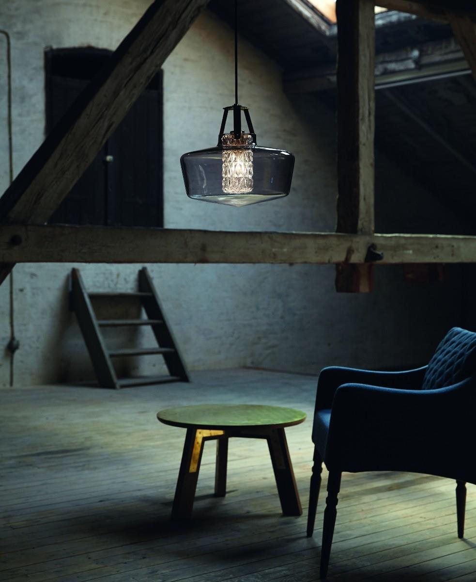 Addicted To Us, siyah metal ve siyah deriden oluşan füme renkli camdan yapılmış bir sarkıt lambadır.