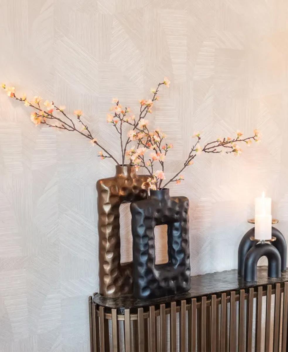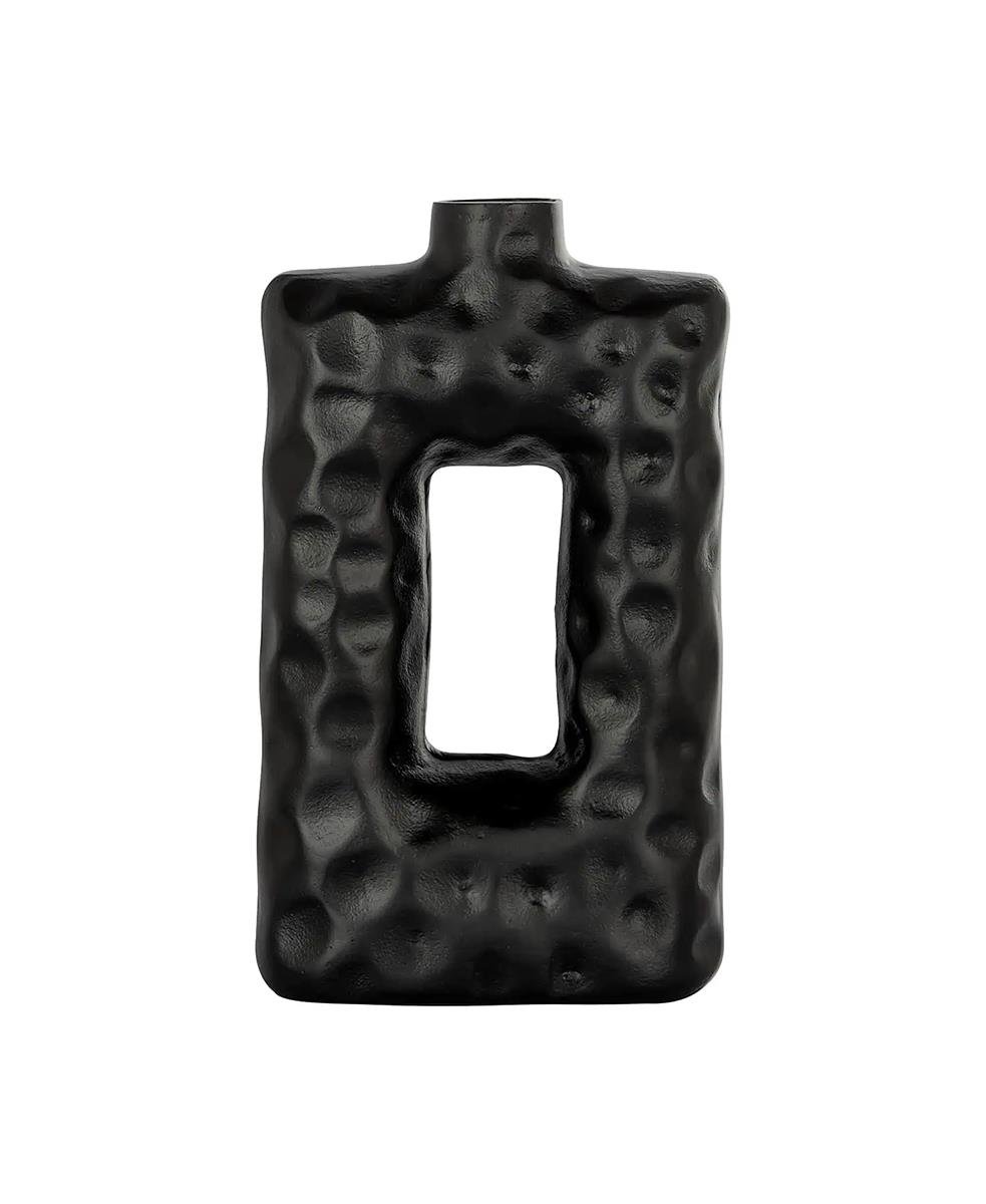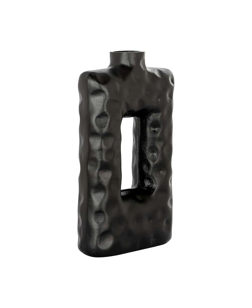 Vazo, ortasında delik bulunan dikdörtgen bir şekle sahiptir ve bu da vazoya benzersiz bir görünüm kazandırır.