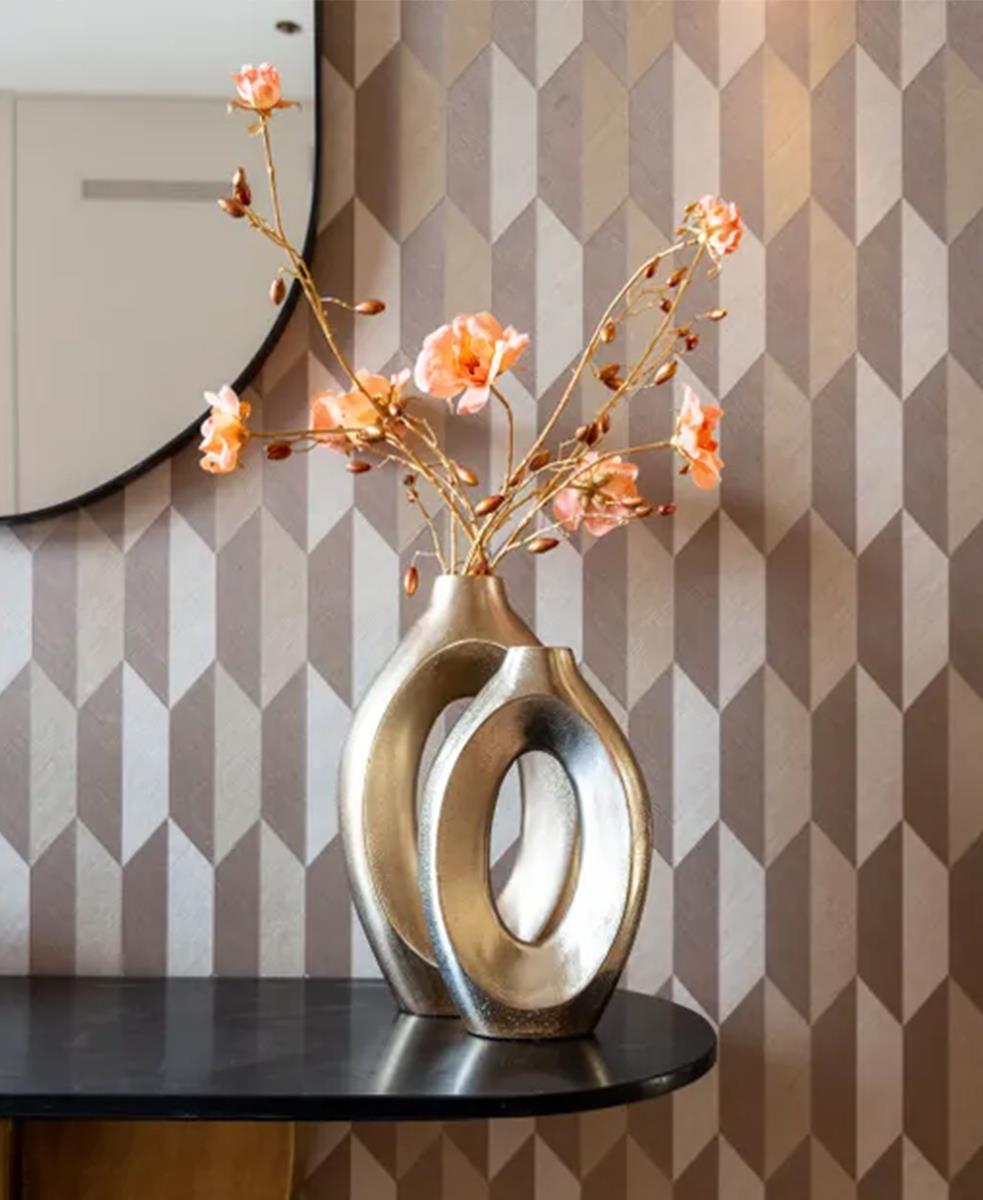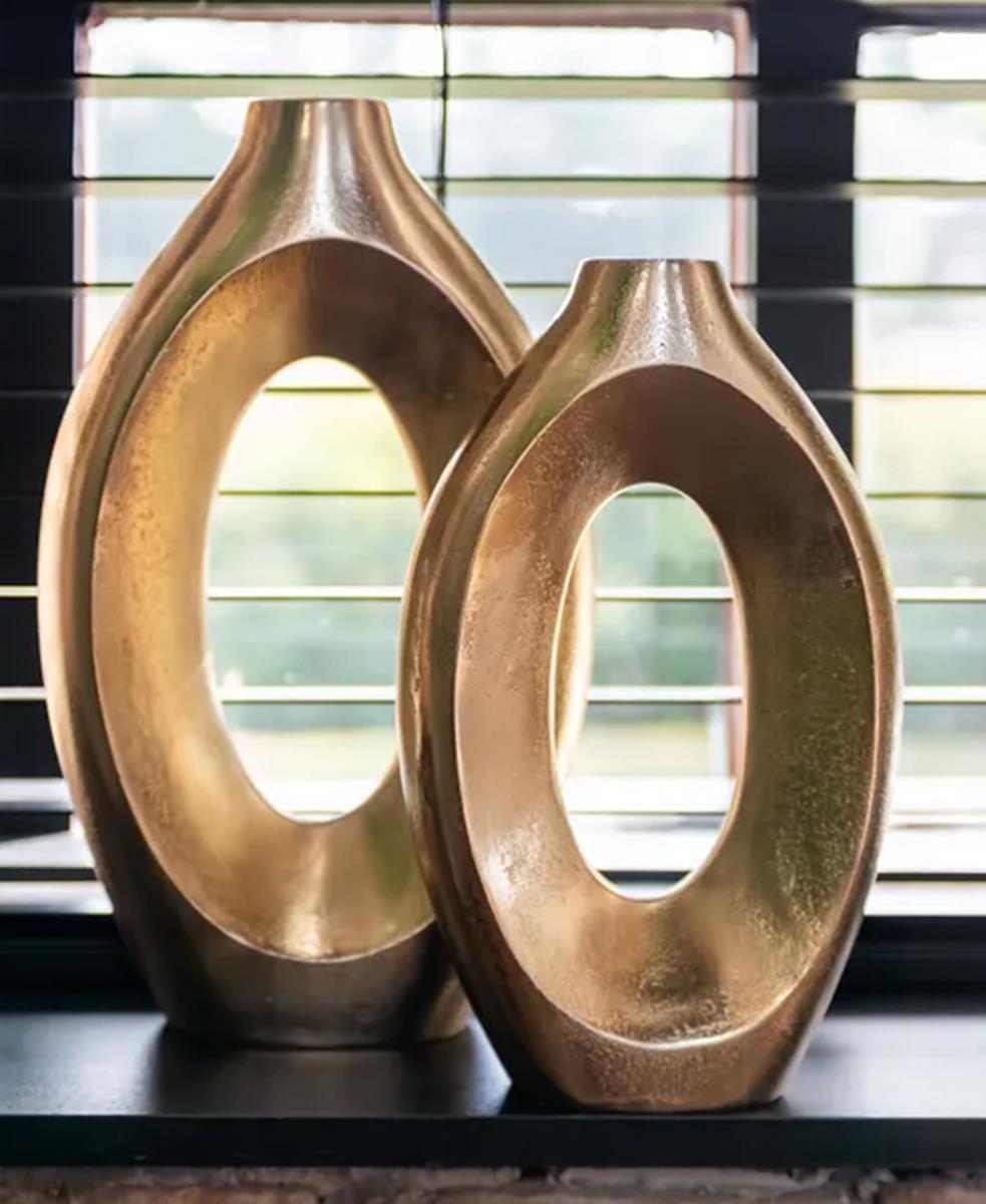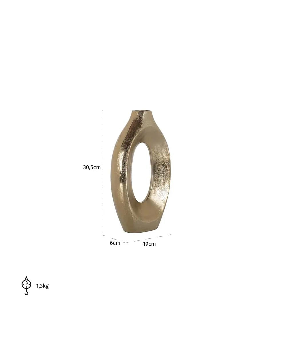 Alma küçük boy vazo, fırçalanmış altın renginde alüminyumdan yapılmıştır.