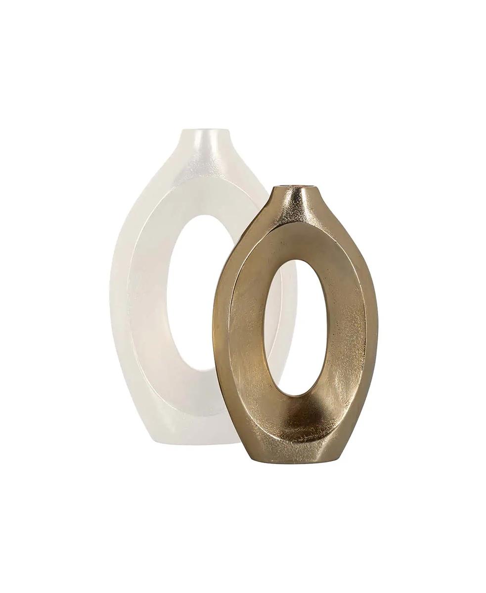 Bu vazo, ortasında bir açıklık bulunan benzersiz bir tasarıma sahiptir ve içinde çiçek olmasa bile dekoratif bir öğedir.