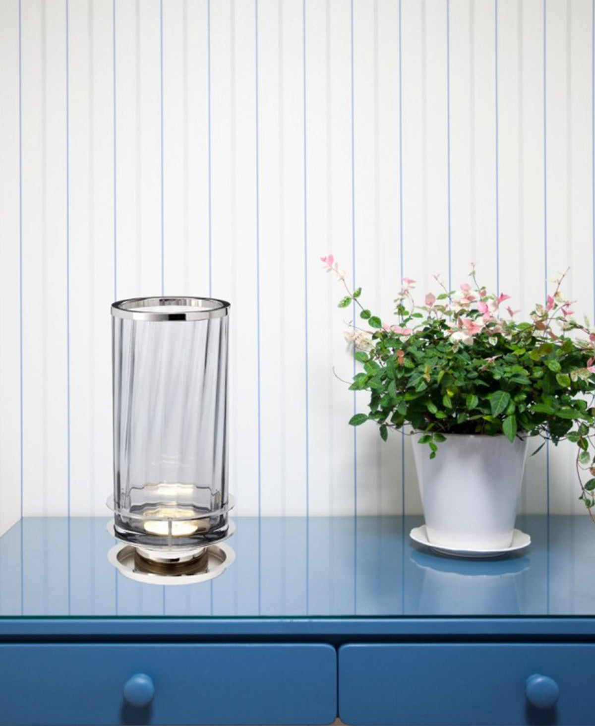 Işık kaynağı, cilalı nikelden yapılmış ince metal detaylarla tabanda gizlenmiştir.