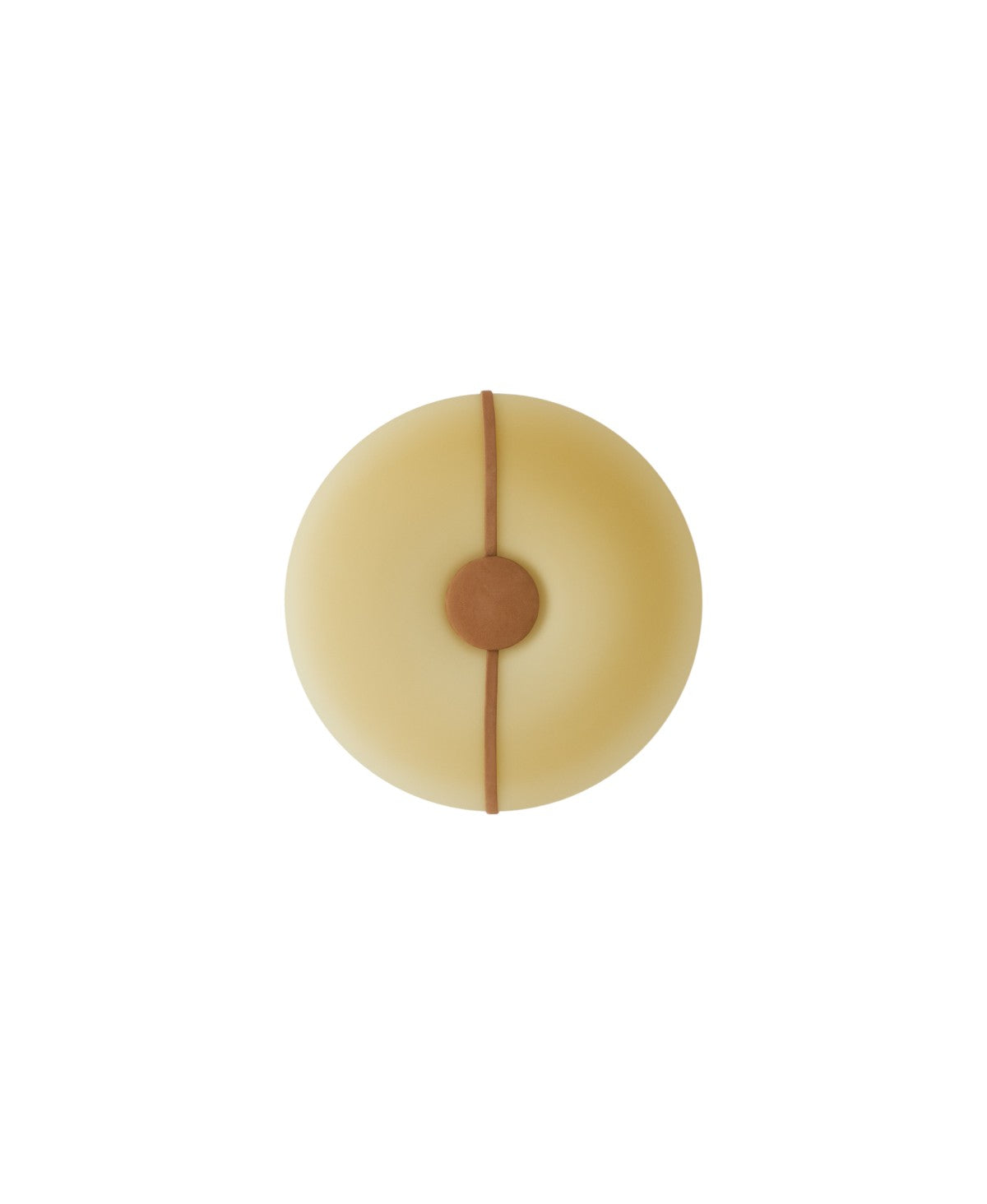Saten kehribar camdan ve karamel nubuk deri kayışlardan üretilen ışıklı gövde, ışığı kucaklayan bir can simidi gibi yumuşak ve davetkar hacimler oluşturuyor.
