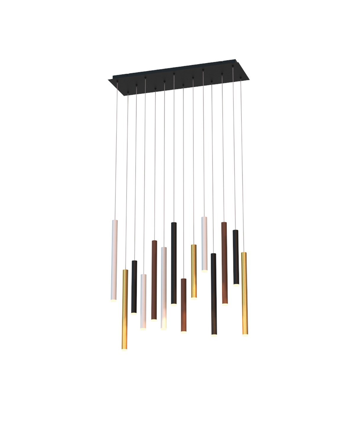 Siyah,beyaz,altın ve kahverengi aluminyum sarkıtlardan oluşan avize