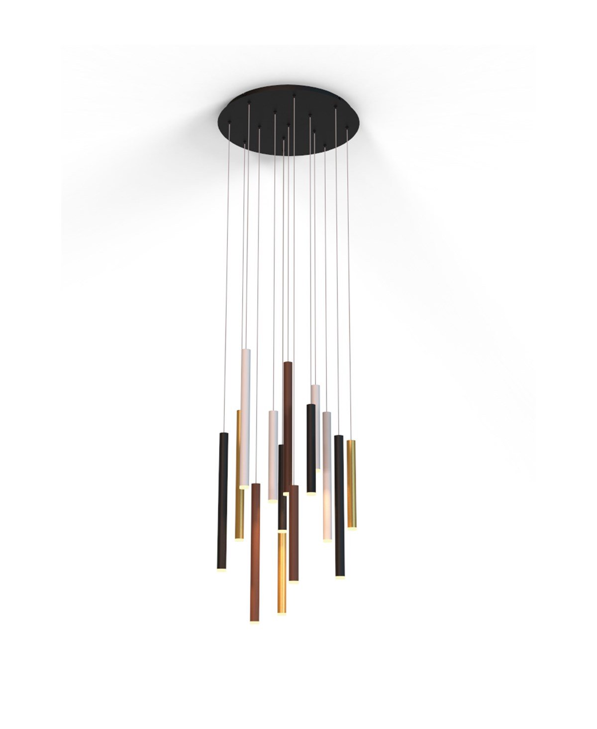 Siyah,beyaz,altın ve kahverengi aluminyum sarkıtlardan oluşan avize