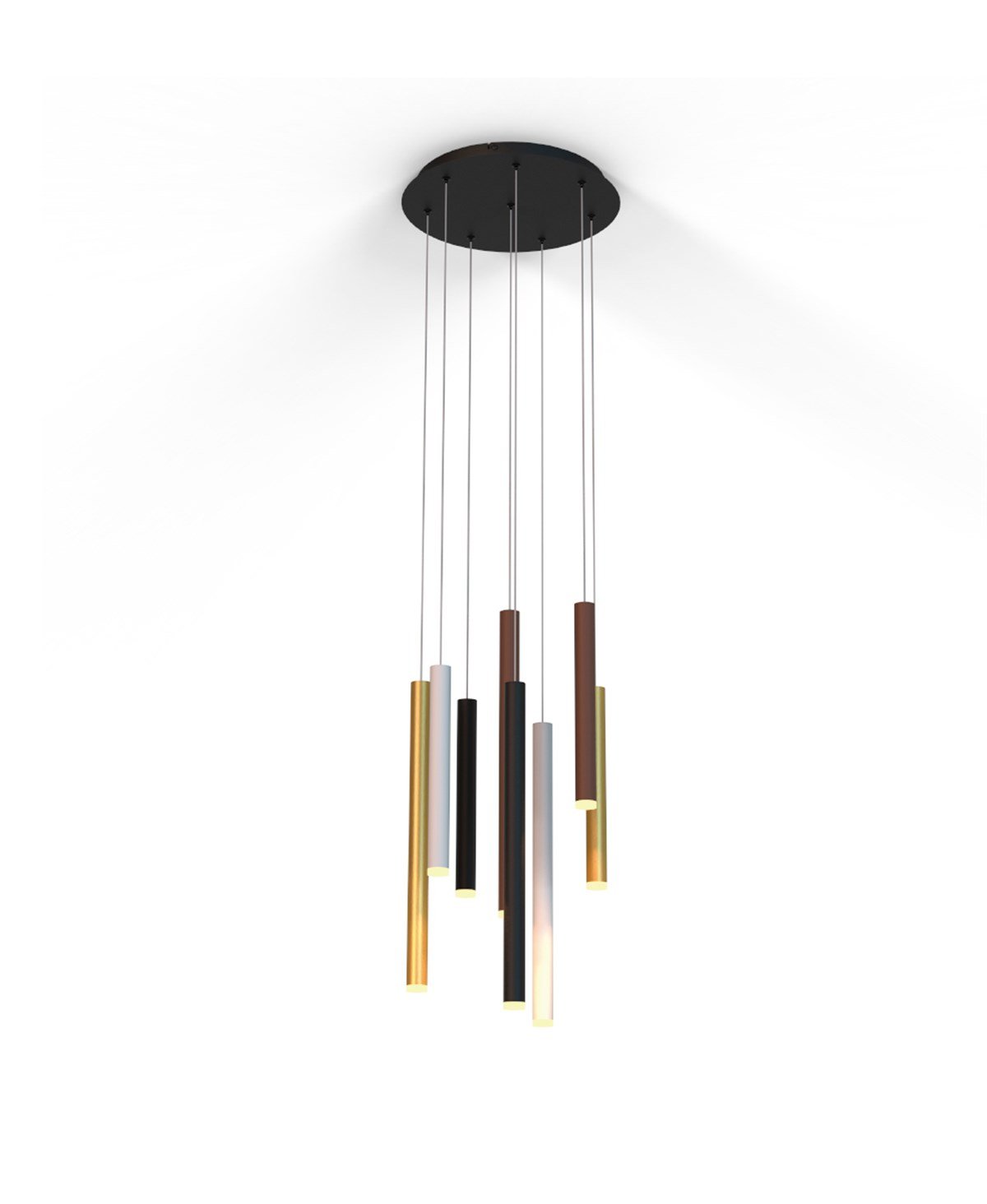 Siyah,beyaz,altın ve kahverengi aluminyum sarkıtlardan oluşan avize