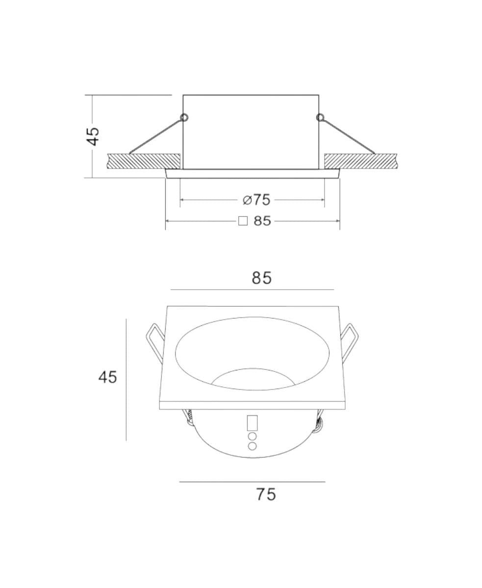 Boyutlar: 85 mm x 85 mm x 45 mm, kesit: 75 mm