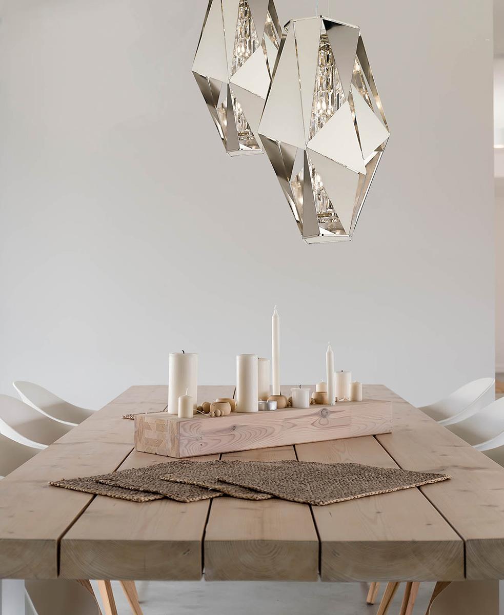 Çağdaş tasarımla birleşen cesur geometrik şekiller, mükemmel ışık oyunları sunuyor. Koleksiyon kristallerle süslenmiştir.