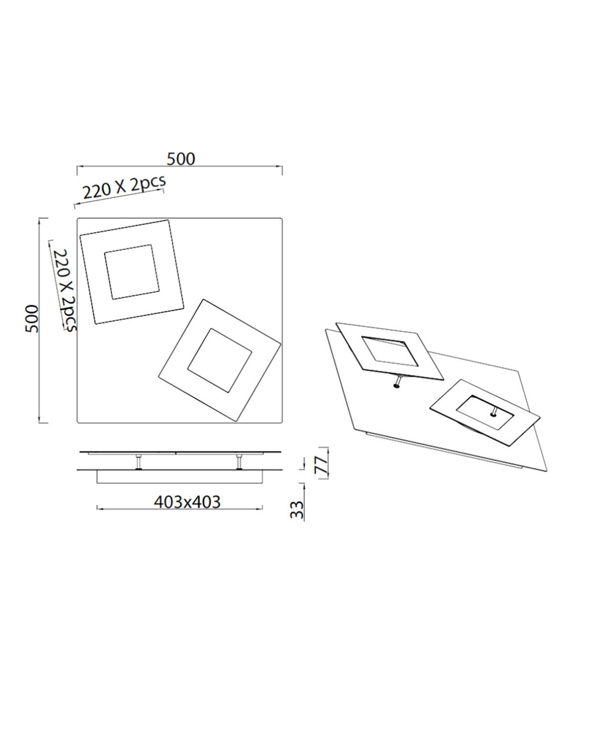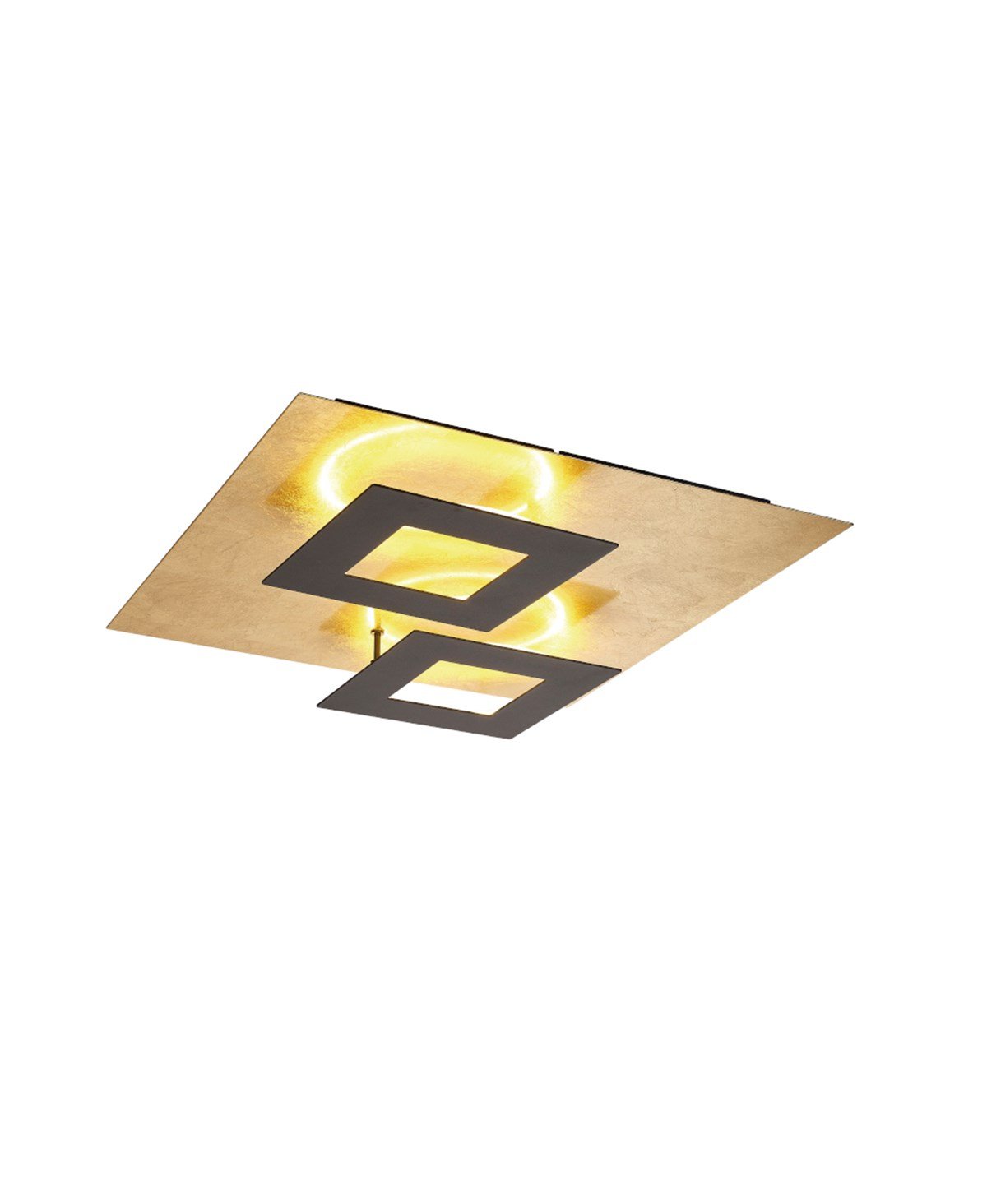 Düz ve kare alüminyum tavan plakasının altında, iki kare, odayı dolaylı ve hoş bir ışıkla aydınlatır.