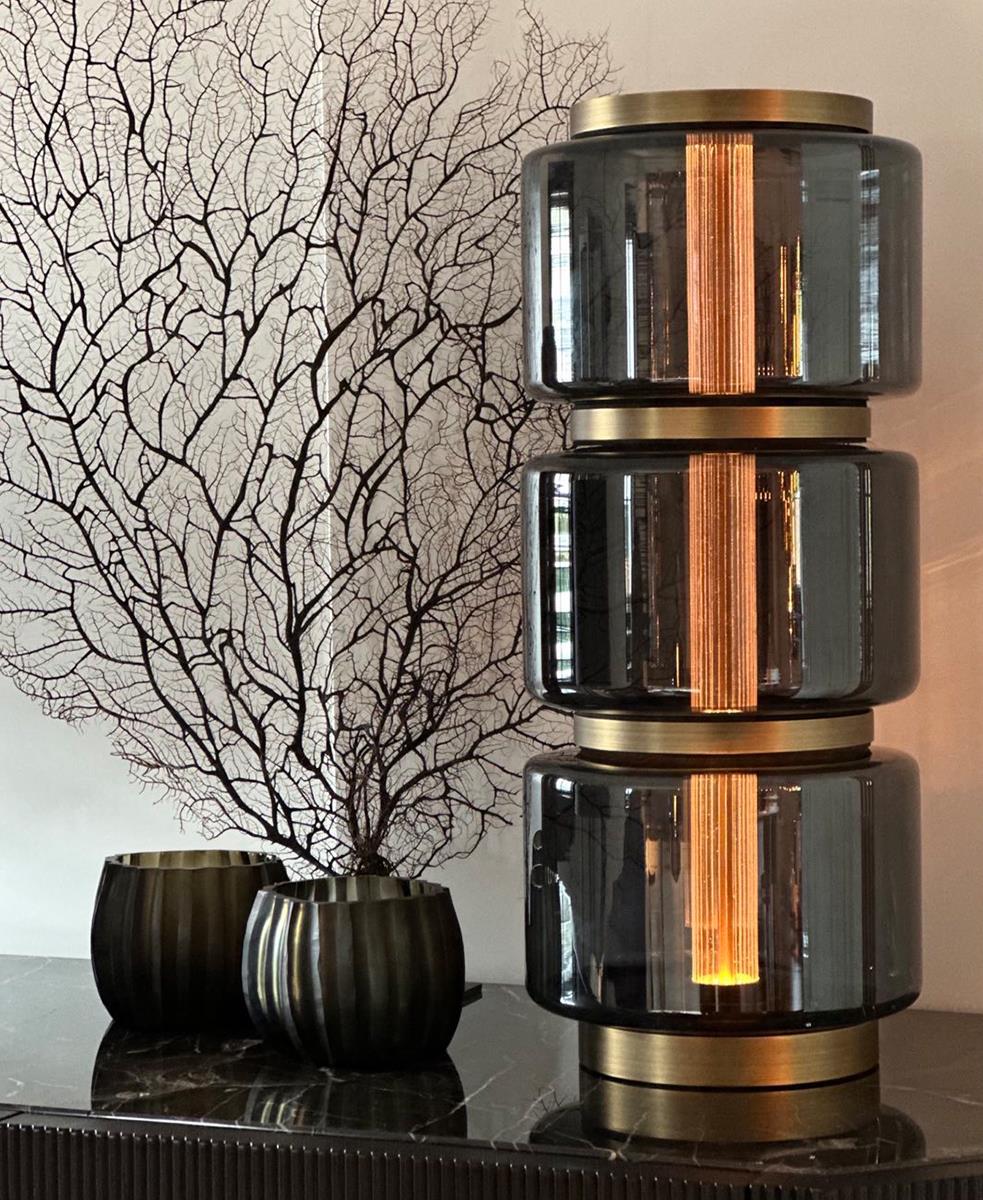 Sıcak ve davetkar bir görünüme sahip, şık bir tasarım masa lambası.
