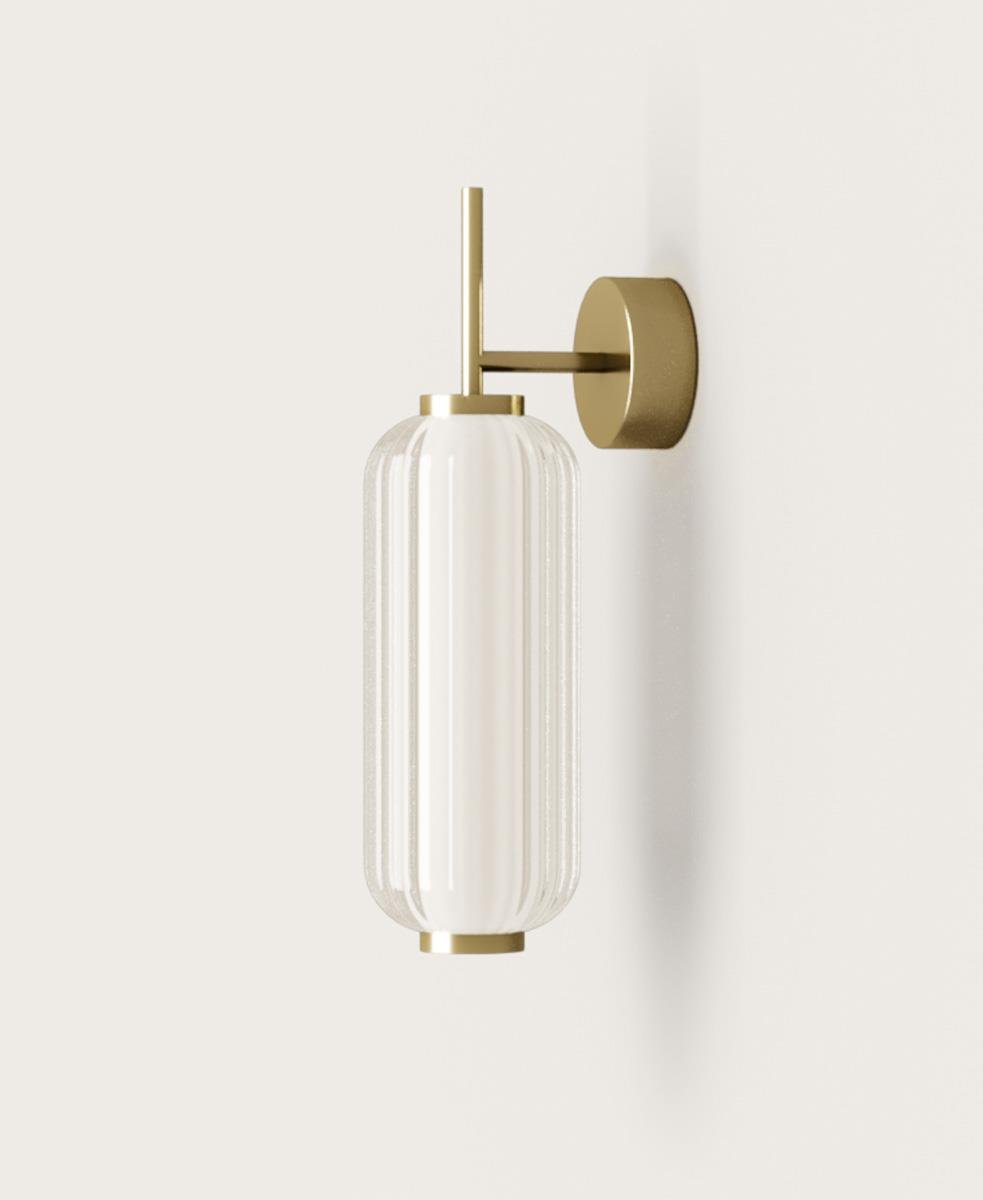 Elma aplik, benzersiz bir stil sunan zamansız yivli cam detayıyla ilgi çekiyor.