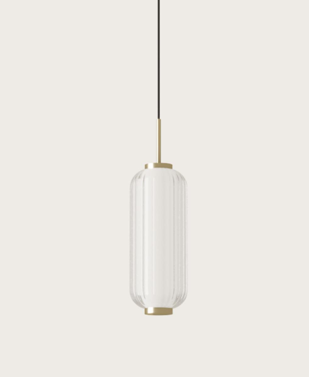 İnce ve hafif metal yapısı, rafine şeffaf çizgili cam difüzörle birleştiğinde sıcak ve sarmalayıcı bir ışık yayarak rahatlatıcı ve davetkar bir atmosfer yaratır.