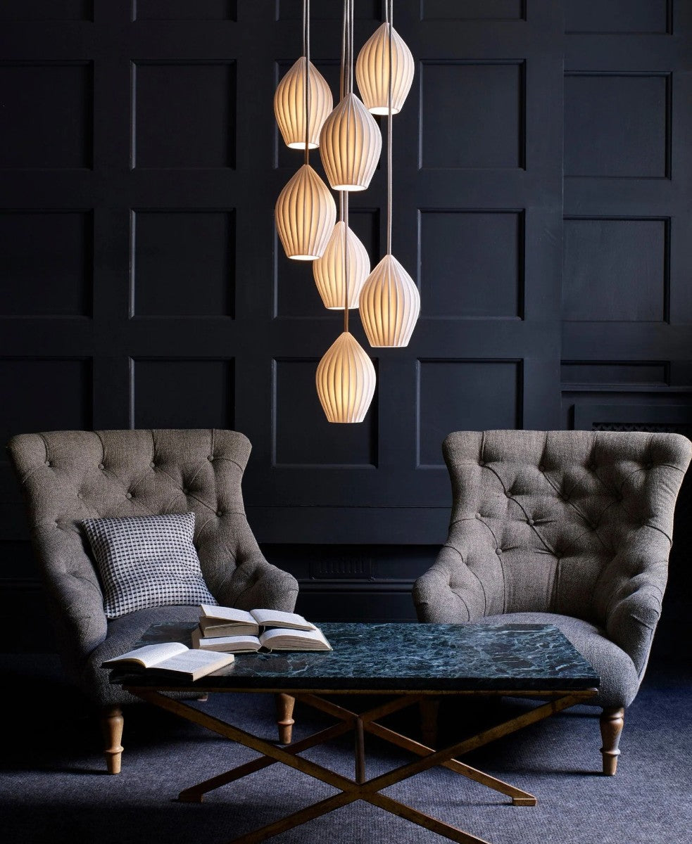 Original BTC'nin gözdesi Fin Sarkıt, oturma odaları, koridorlar ve yemek odalarında göz alıcı bir odak noktası oluşturmak için mükemmel bir şekilde, göz alıcı bir dizi grupta da mevcuttur. Karmaşık ve dekoratif el yapımı porselen sarkıtlar her ortama büyüleyici bir ışıltı katacak. Kişisel tercihe bağlı olarak farklı uzunluklarda asılabilir.