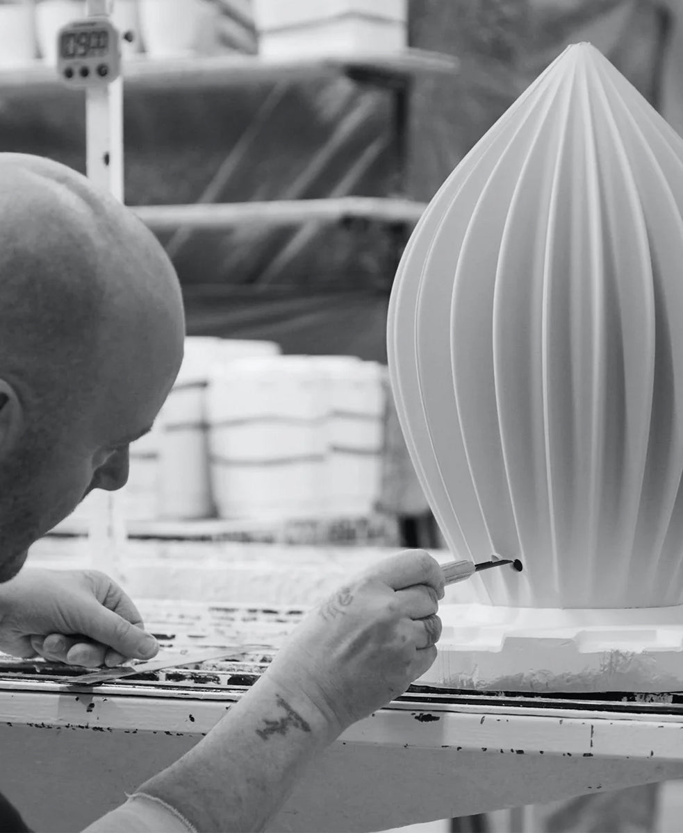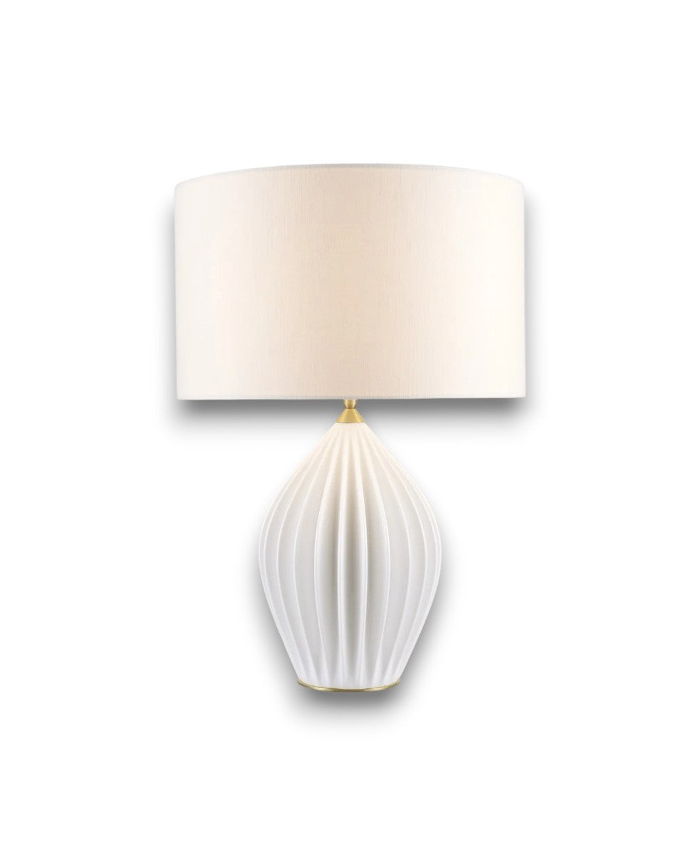 Fin King masa lambası, göz alıcı kemik porselen yapısıyla, karmaşık organik şekillere kalıplanmış, son derece çekici bir lambadır. Stoke-on-Trent'te el yapımı olan lamba, okumayı kolaylaştırmak için ayarlanabilir bilye ve soket bağlantısına sahip fildişi rengi keten silindir abajur ile birlikte gelir.