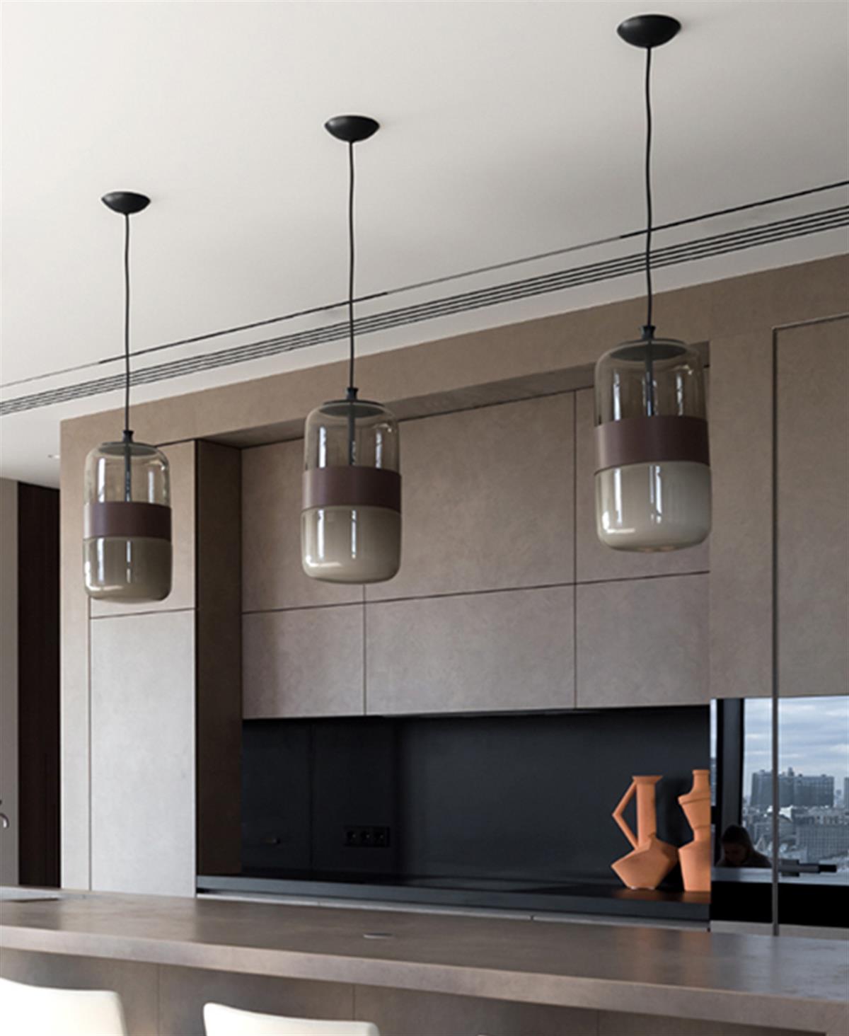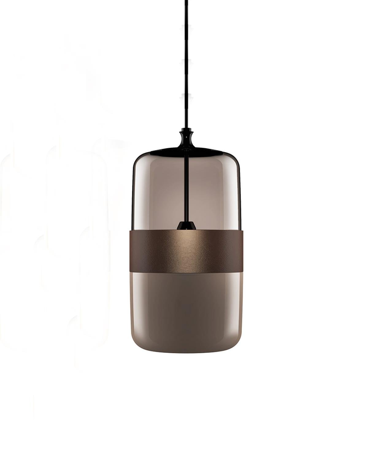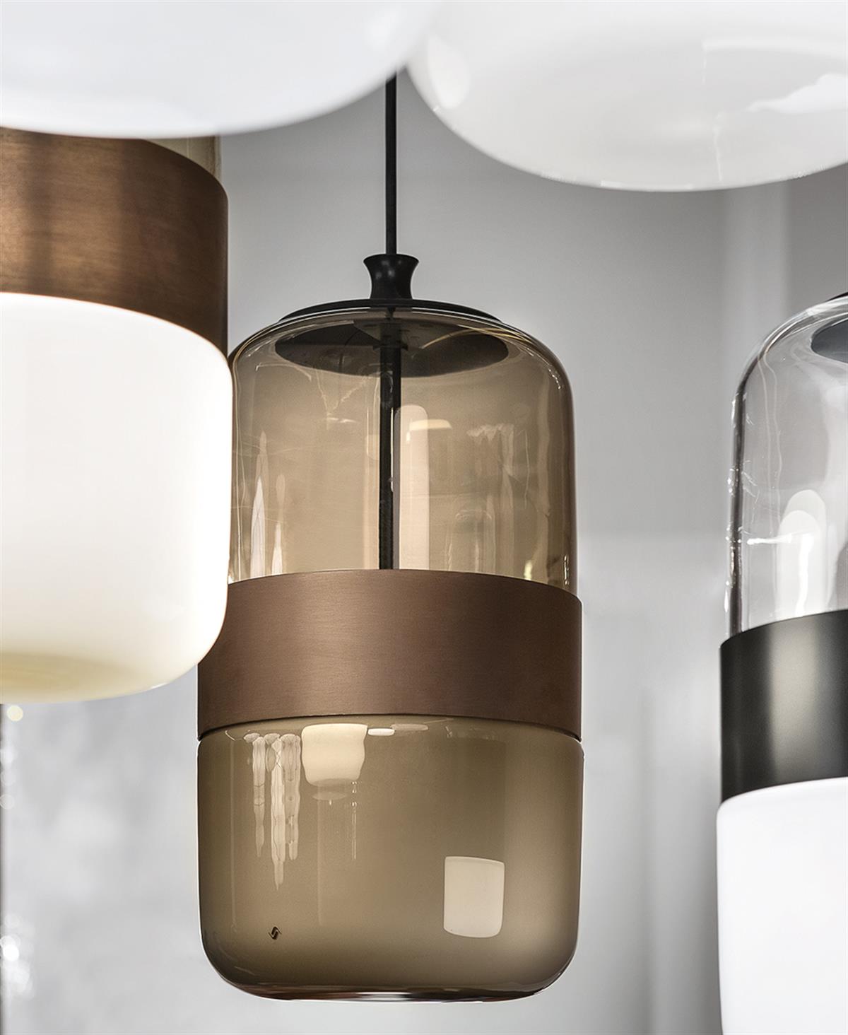 Tek bir üfleme cam parçasından yapılmış, özel işçiliği çift kromatik bir etki sağlayan bir lamba koleksiyonu: üstte şeffaf, altta saten etkisi.
