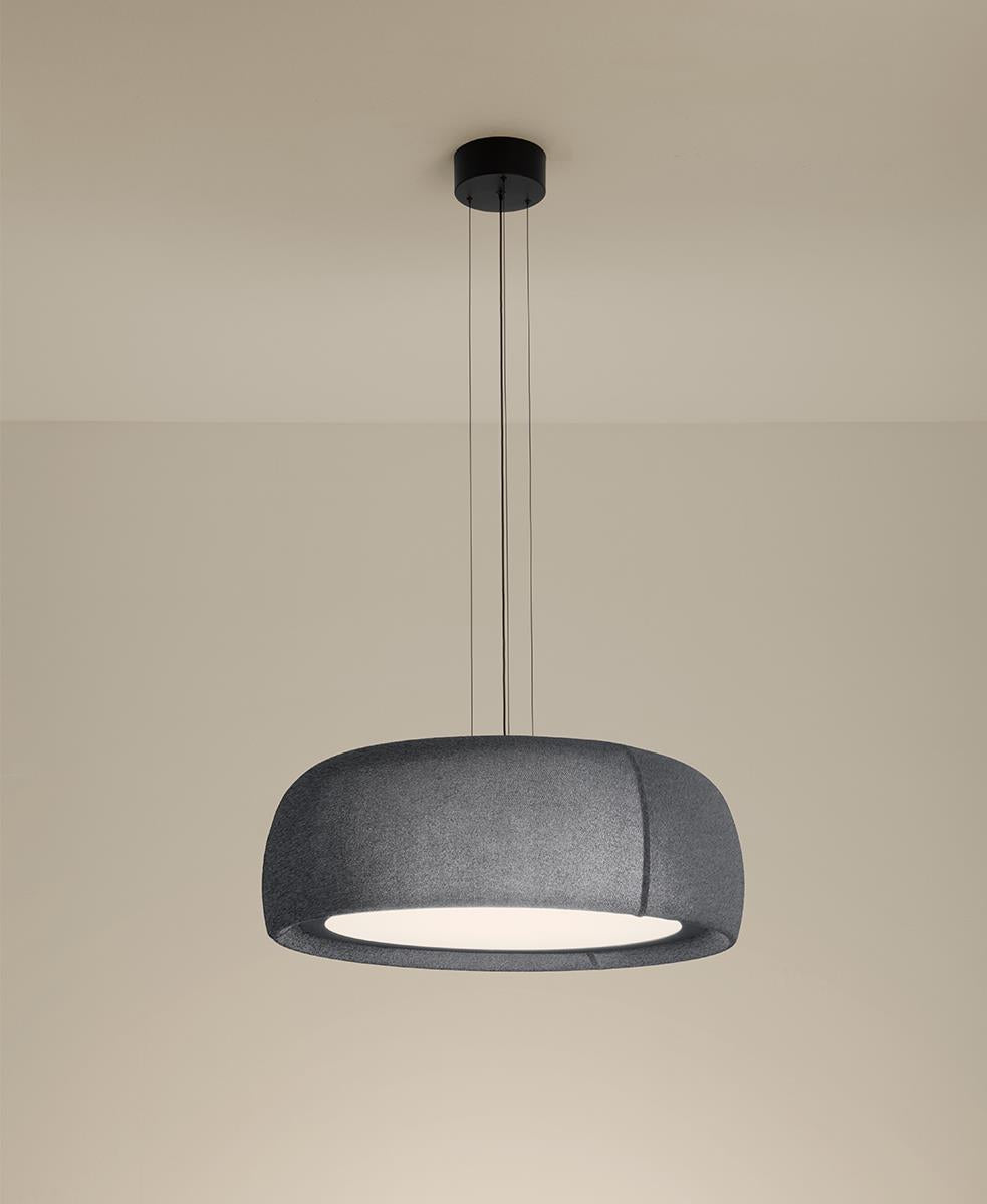 Gong, kumaş malzemeden nazikçe geçerek bir cazibe duygusu uyandıran filtrelenmiş bir ışıltı yayan büyüleyici bir armatürü temsil ediyor.