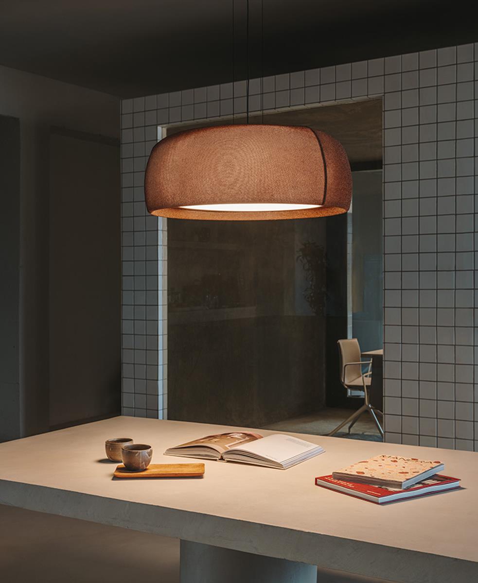 Gong, kumaş malzemeden nazikçe geçerek bir cazibe duygusu uyandıran filtrelenmiş bir ışıltı yayan büyüleyici bir armatürü temsil ediyor.