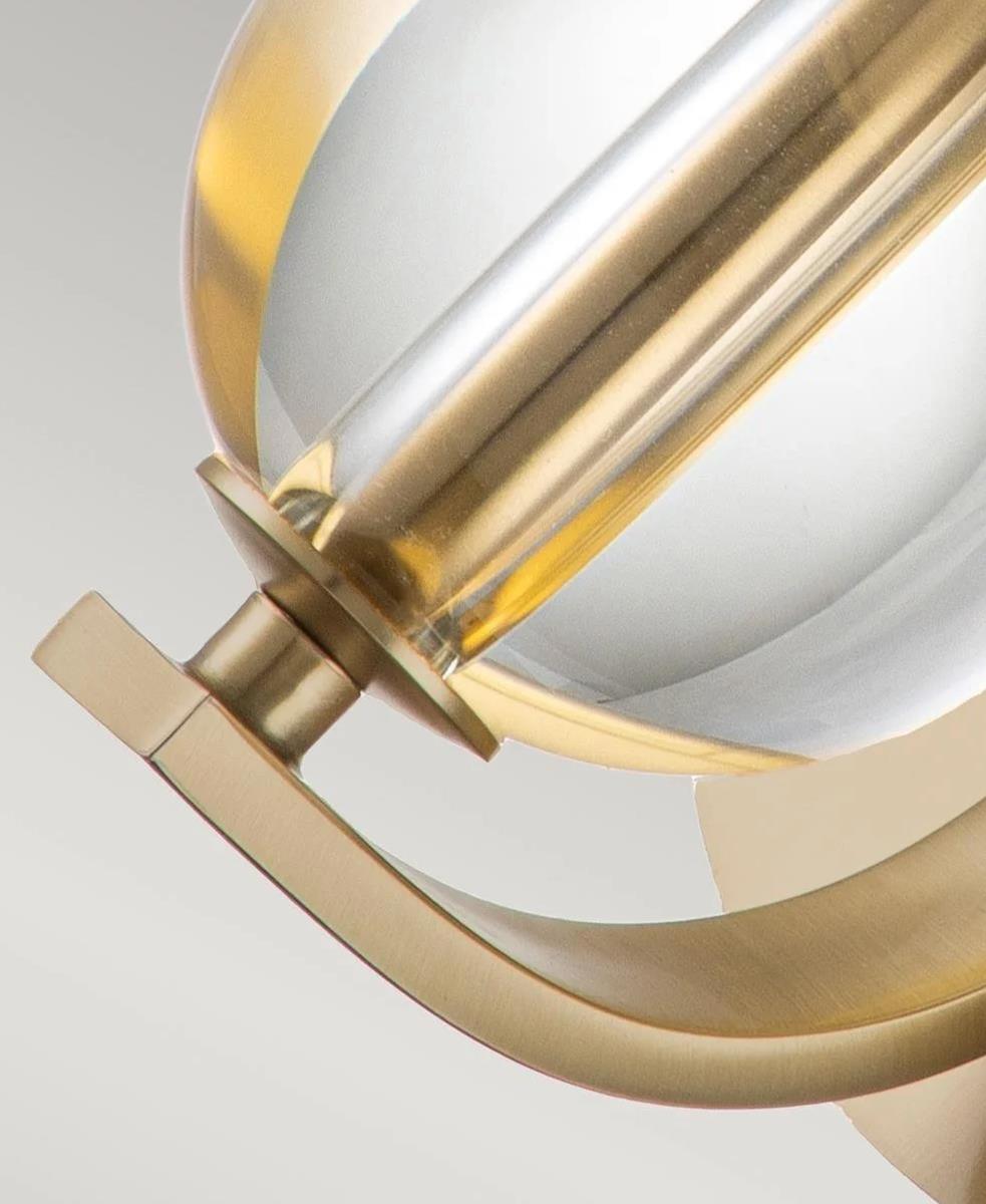 Fırçalanmış pirinç metal çerçeve, cam küre ve krem rengi şapkasıyla çok şıktır.