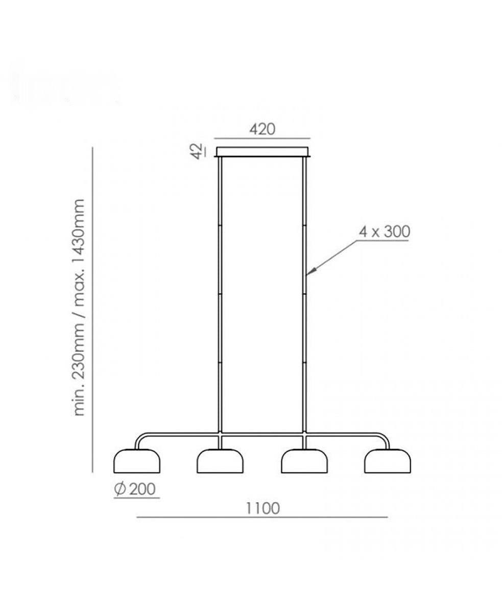 4 x LED plate 10W, 2700K, 2100 lm TRIAC dimmable driver on canopy 220-240V, 50/60Hz, IP20