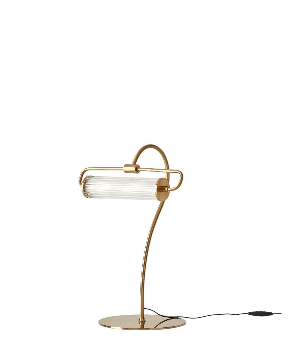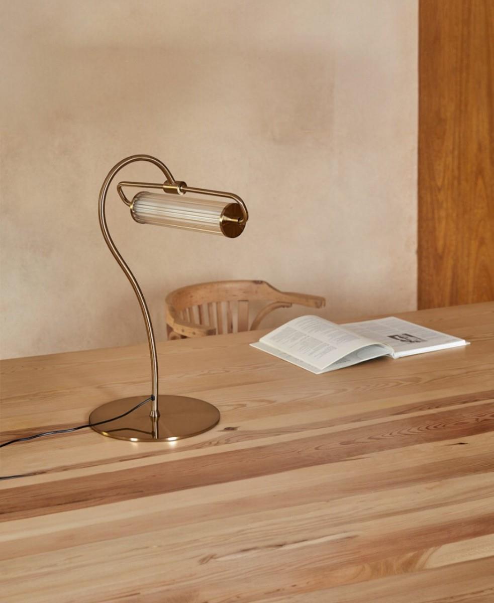 Kıvrımlı çizgilere sahip bir masa lambası için vintage bir tasarım.