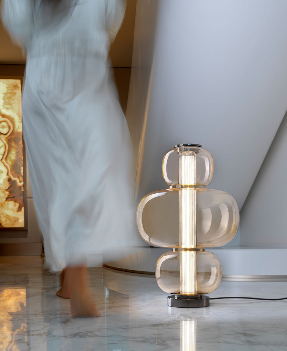 Nube, yuvarlak formların değişken dengesini neredeyse sihirli bir şekilde yakalıyor. Havada dönen bulutlar gibi, kompozisyon kapasitesi güçlü ve farklı geleneklerin ve sanatsal becerilerin karışımından ilham alıyor.