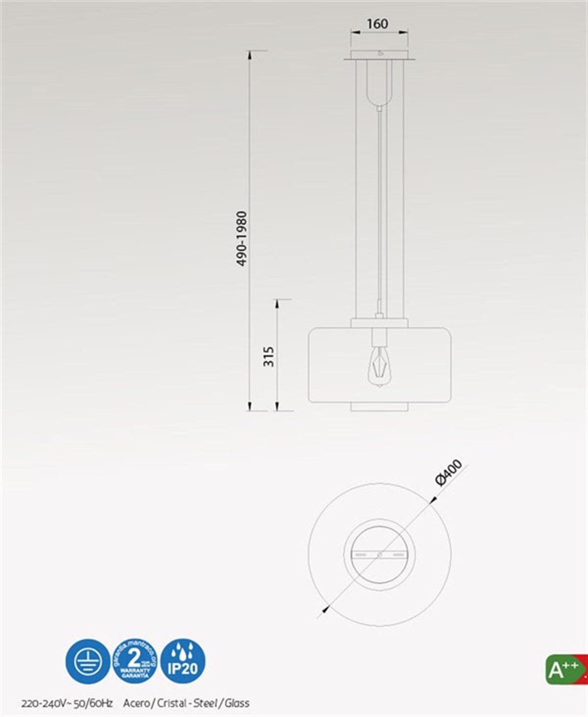 Ampul Gücü: 1 x 40 W E27