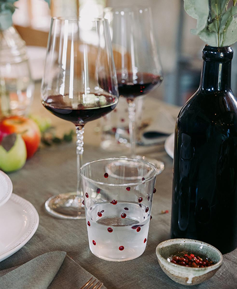Jeannie, kaliteli, kurşunsuz kristal camdan yapılmış ve Avrupa'da Zafferano tarafından özel olarak dağıtılan üç muhteşem şarap kadehinden oluşan bir set tasarladı.