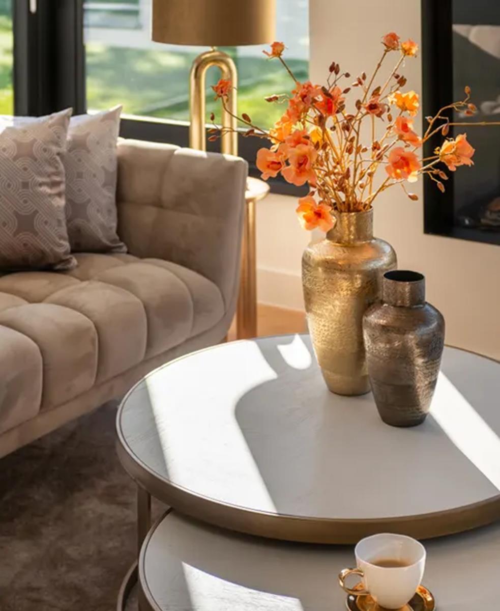 Bu vazo, duman siyahı rengi ve vazodaki detaylar nedeniyle lüks, zarif bir iç mekan tarzına mükemmel uyum sağlar.
