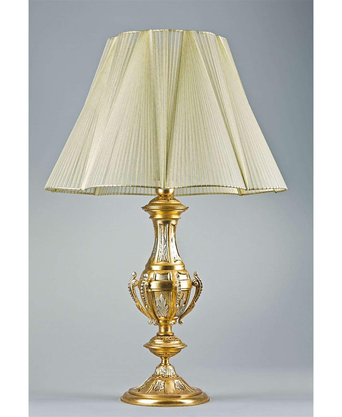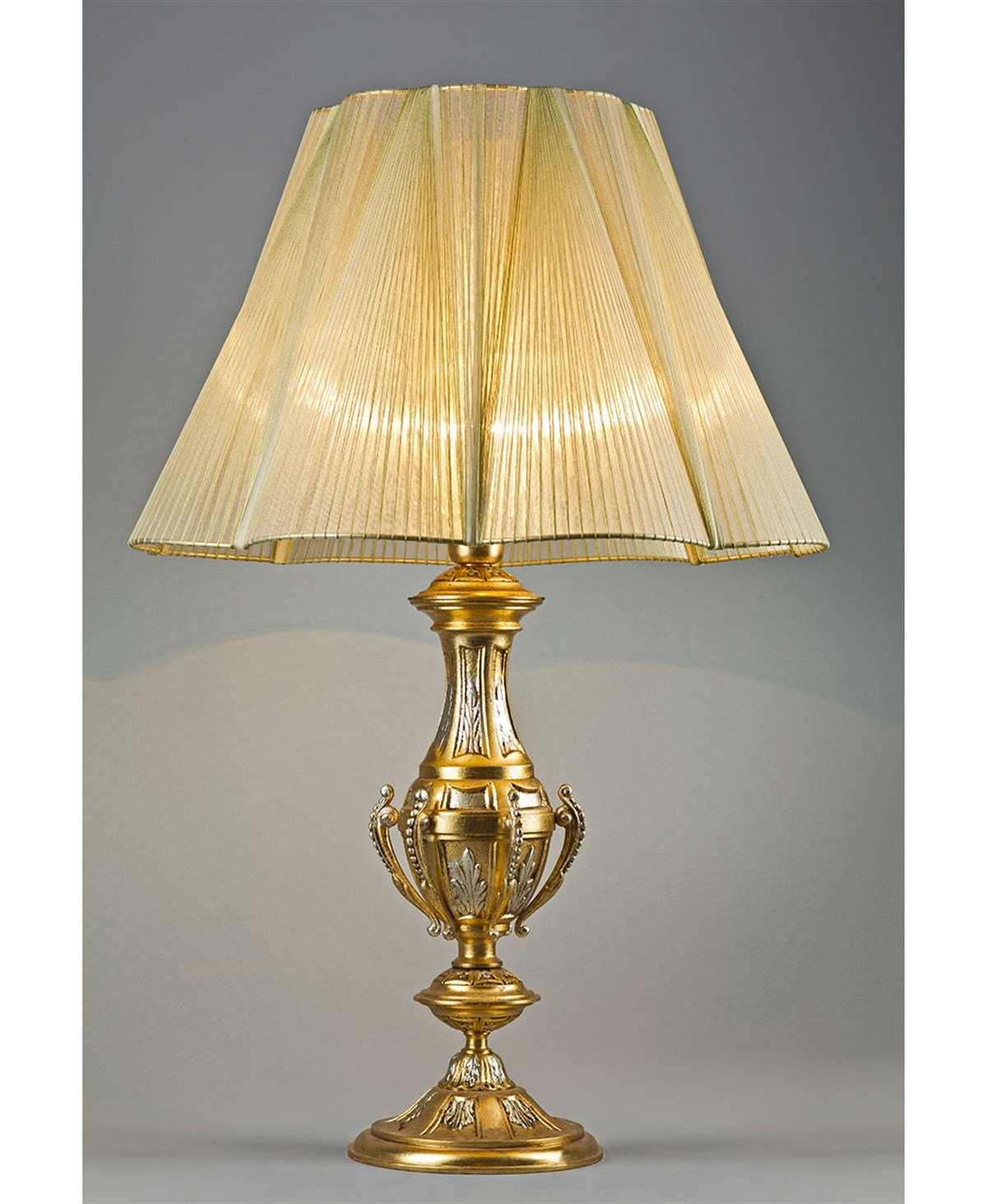 Dökme bronz malzeme üzeri altın ve gümüş varak Çap: 45 cm Yükseklik: 75 cm Ampul Adedi: 1 Ampul Gücü: 100W Ampul Türü: E27 Menşei İtalya Fiyatlarımıza ampul dahildir.