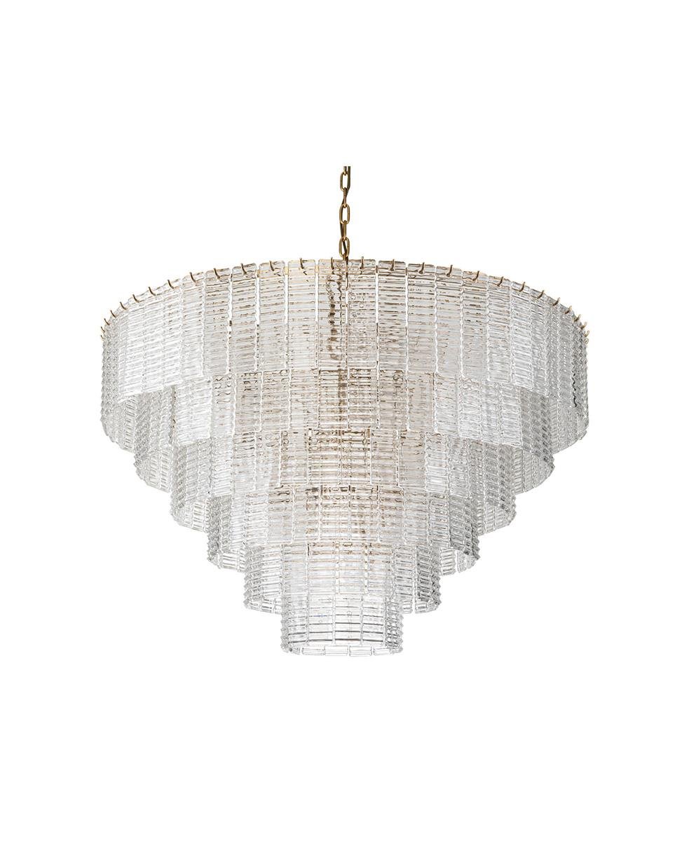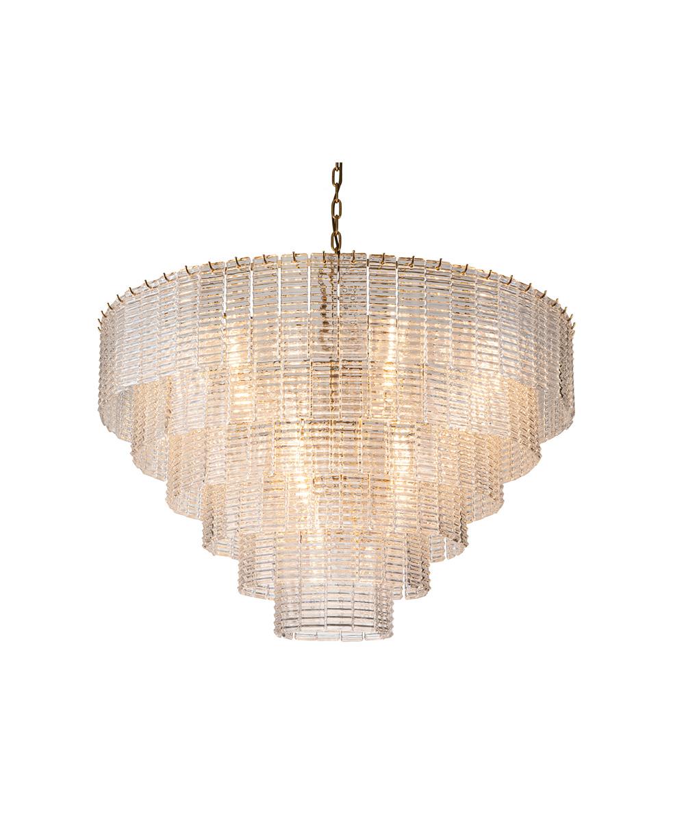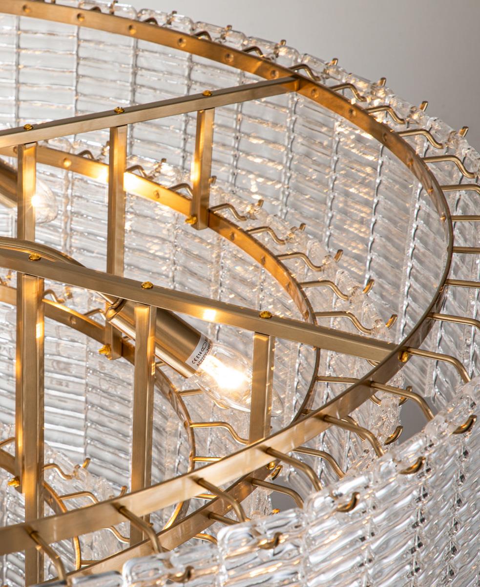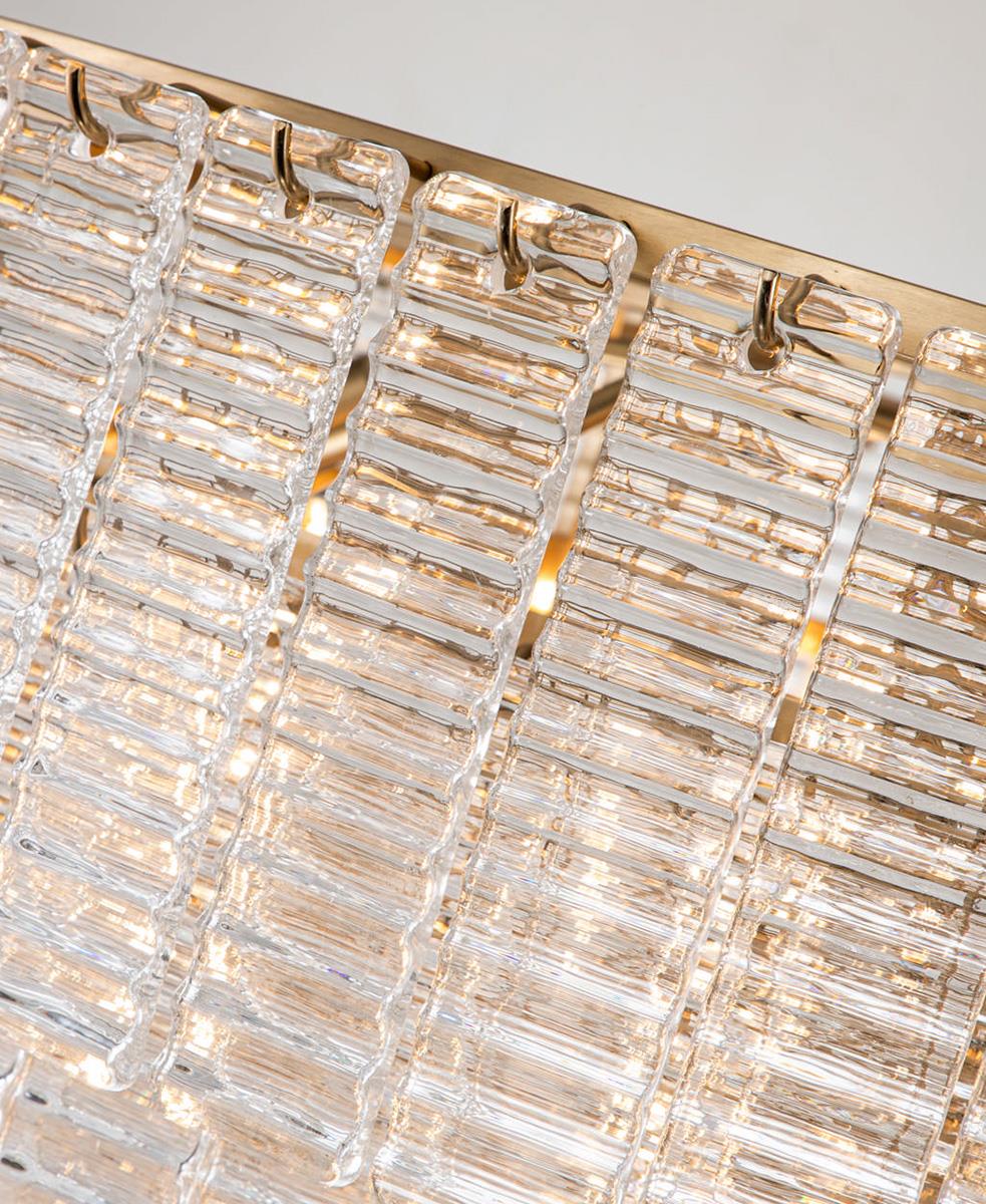 Zarif cam ve pirinç metal tavan lambasıyla lüks ve sofistike bir dokunuş katın.
