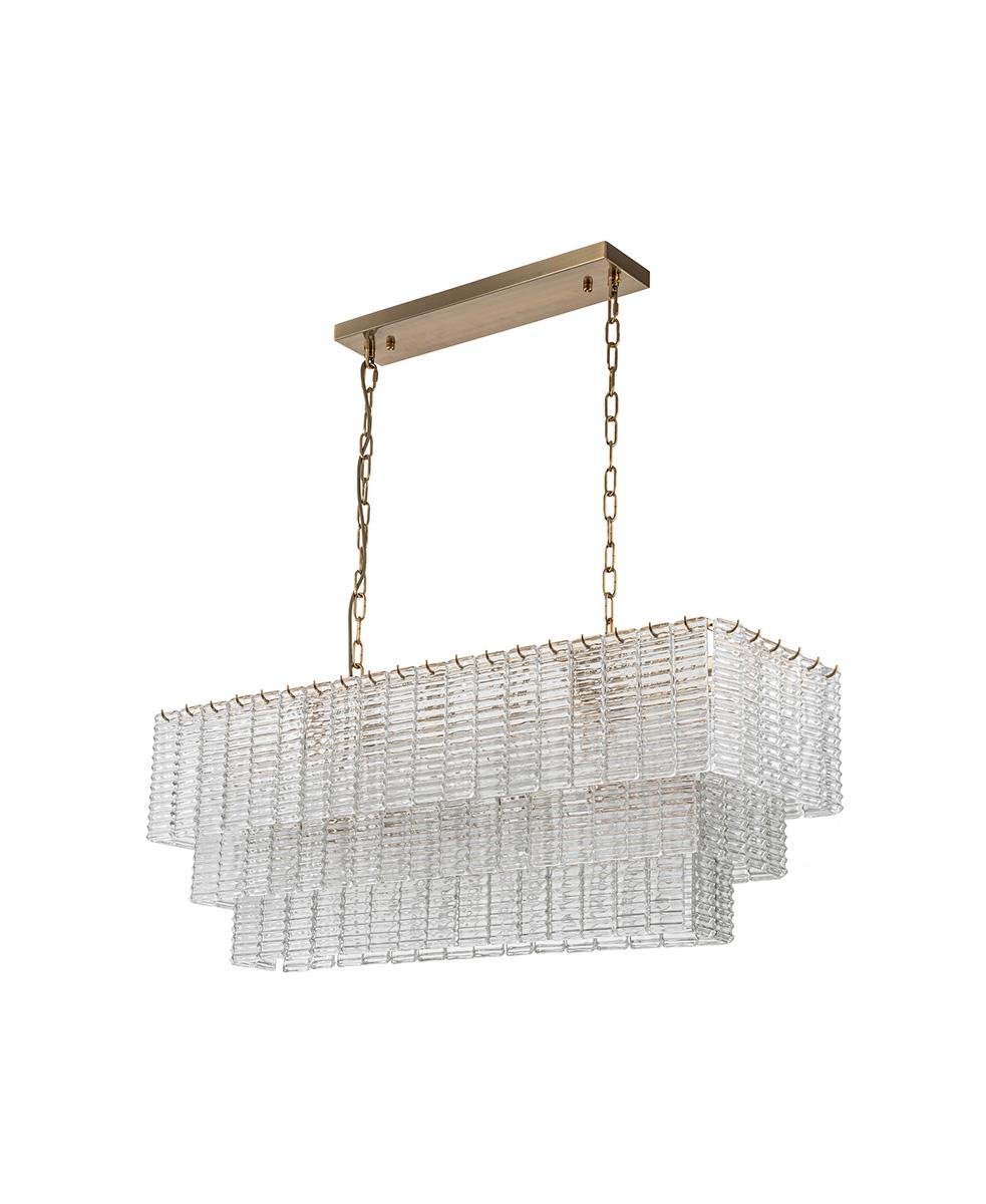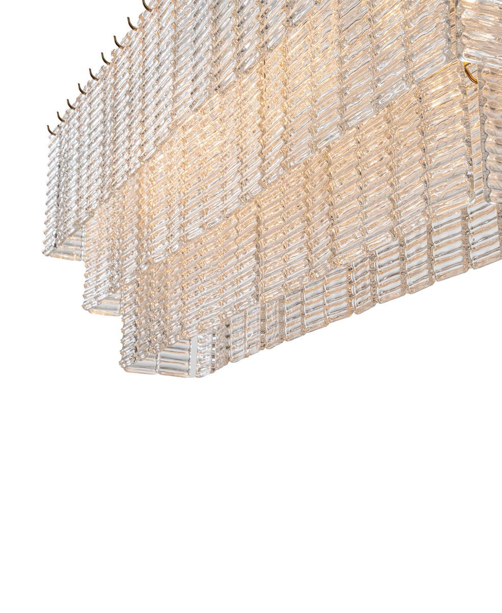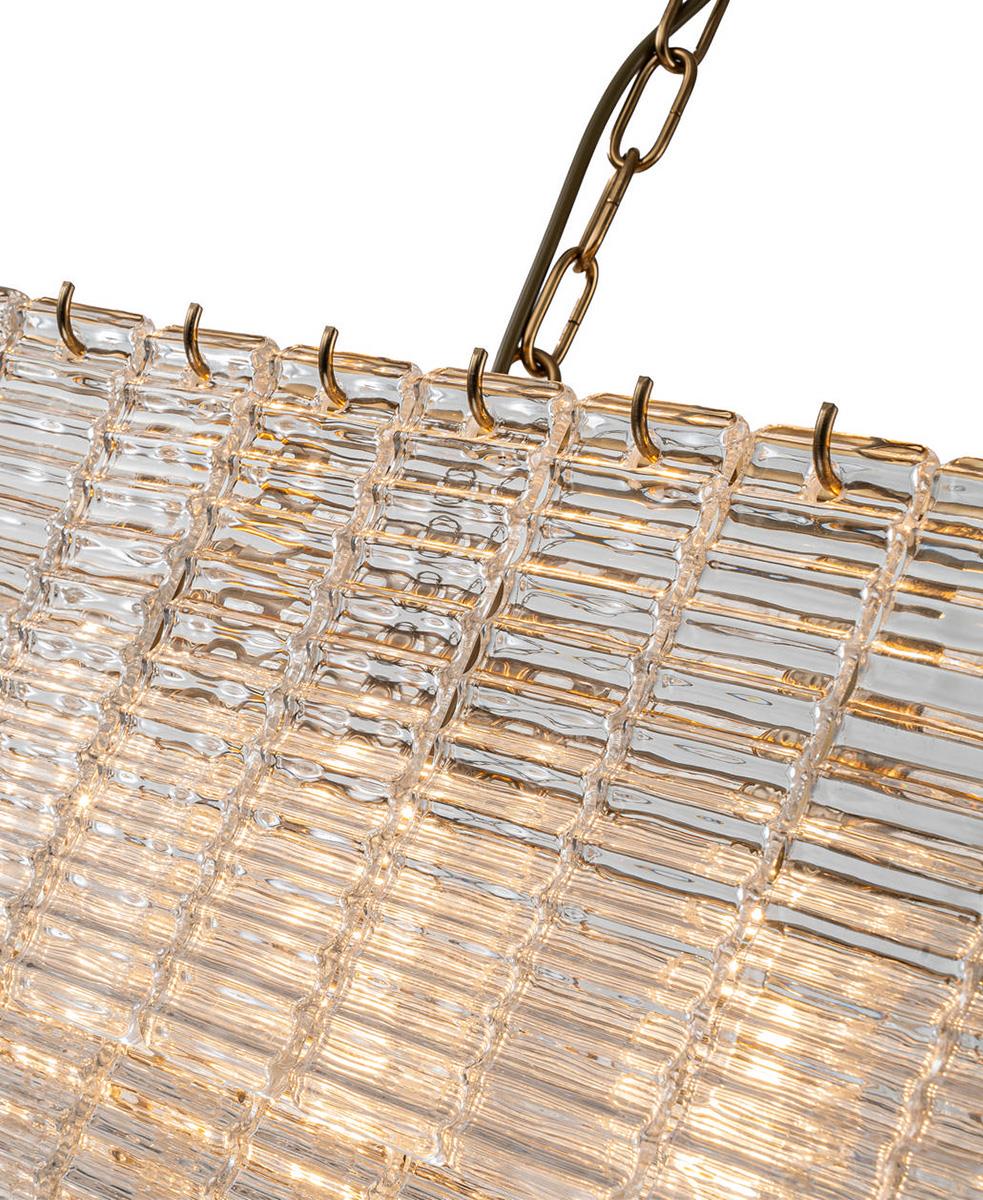 Zarif cam ve pirinç metal tavan lambasıyla lüks ve sofistike bir dokunuş katın.
