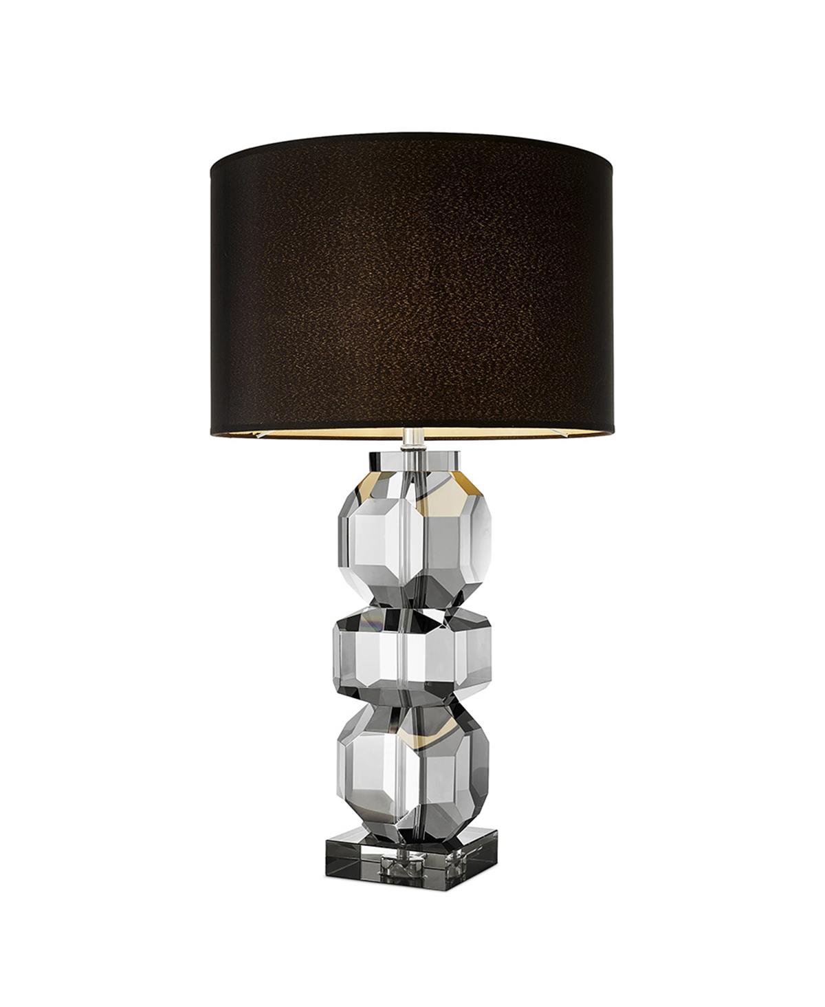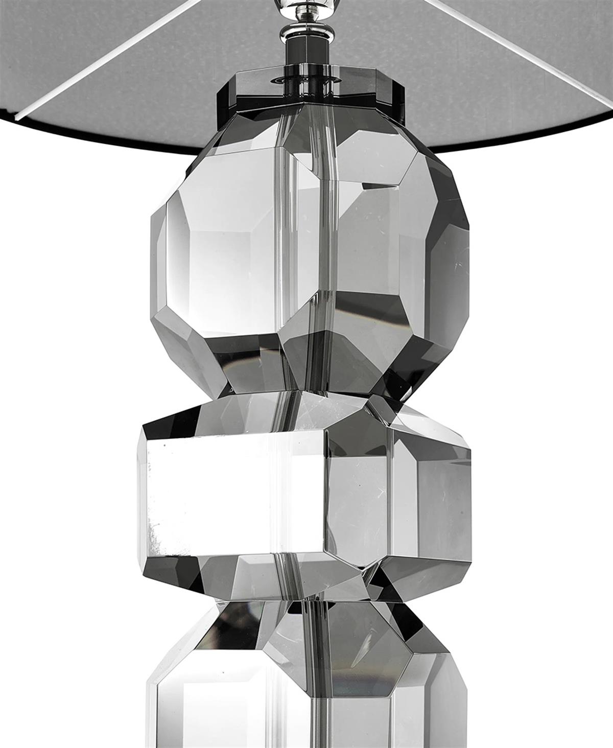 Lamba, füme kristal camdan bir kaide üzerine yerleştirilmiştir ve modern bir heykel görünümü veren dökme reçine tabanına sahiptir.