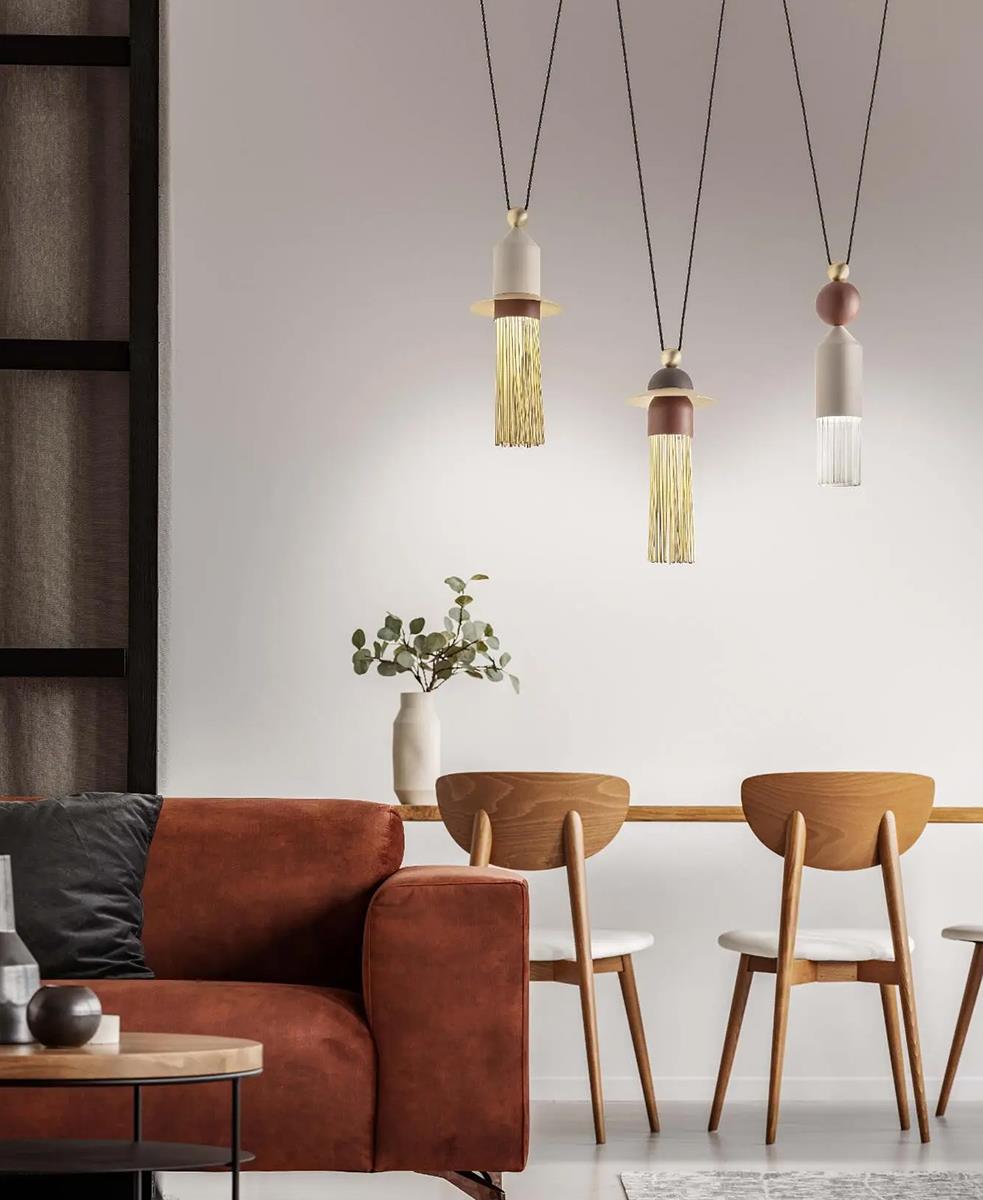 Marco Zito tasarımı Metal çubuklar ve cam difüzörlerle boyalı metal sarkıtlar Nappe, zarif İtalyan markası Masiero tarafından üretilen güzel bir lamba koleksiyonudur. Güzel Nappe koleksiyonu farklı modellerde ve renk kaplamalarında mevcuttur. Metal çubuklar ve pyrex cam difüzörlere sahip boyalı metal yapı. Üç avize 145 cm uzunluğunda bir kabloya yerleştirilmiş ve 45 cm aralıklıdır. Ara ölçüler istenilen şekilde ayarlanabilir.