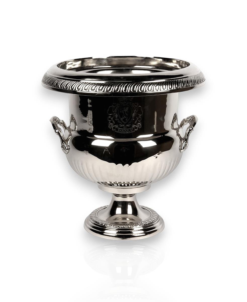 Akşam yemekleri veya kutlamalar için mükemmel şampanya ve şarap soğutucu. Nikel kaplamalı pirinçten yapılmıştır. Soğutucu ayrıca çiçeklerle bir aksesuar olarak da kullanılabilir. Bu soğutucunun boyutları h.37x35x35 cm'dir.