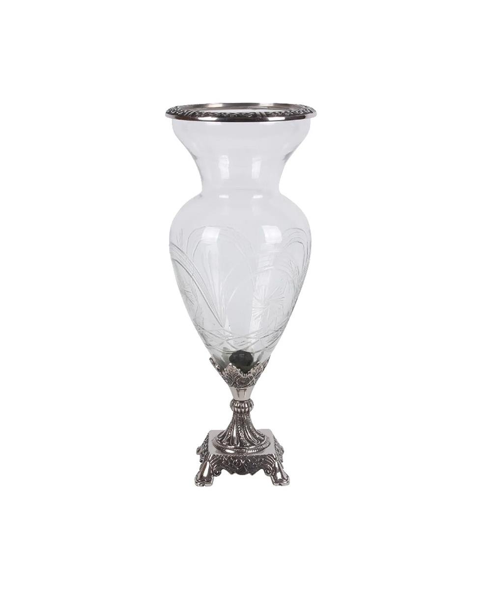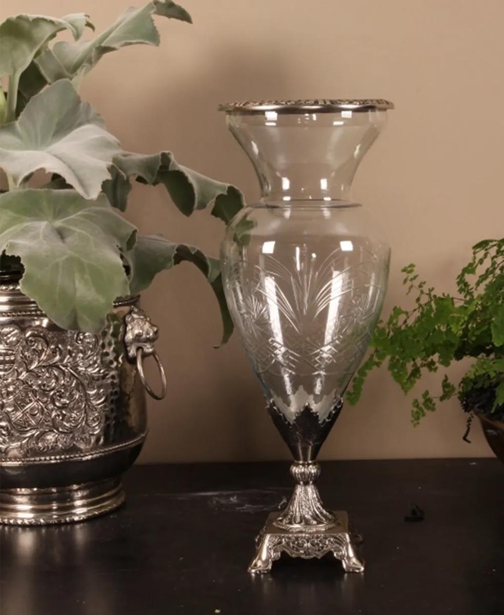 Bu şık cam vazo her odaya gerçek bir katkıdır. Şık detayları ve zarif şekliyle bu gümüş vazo öne çıkıyor.