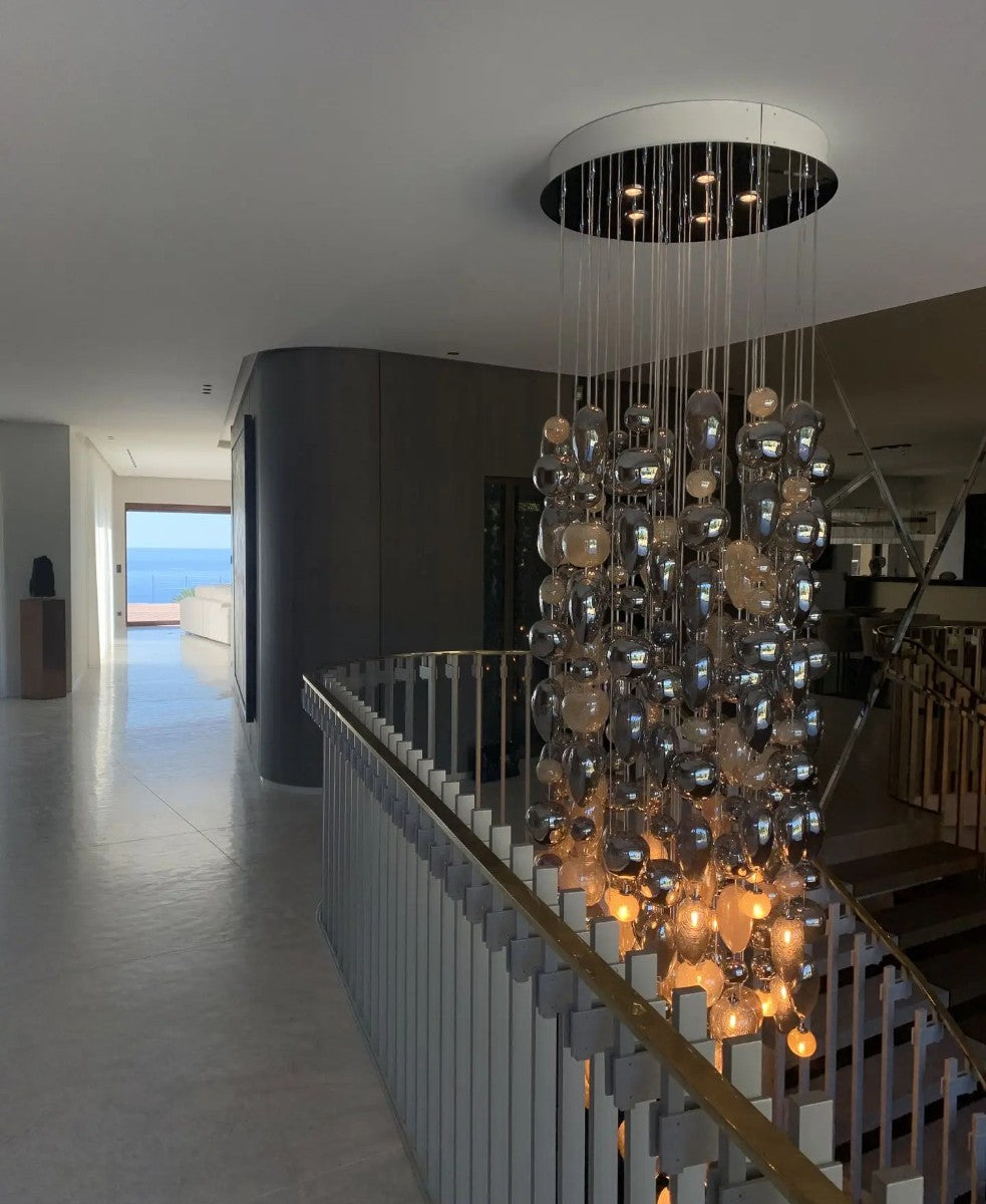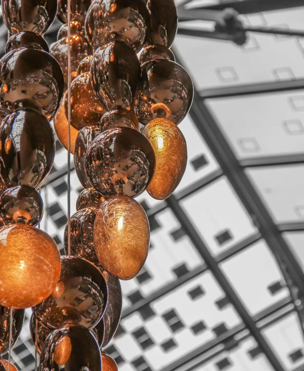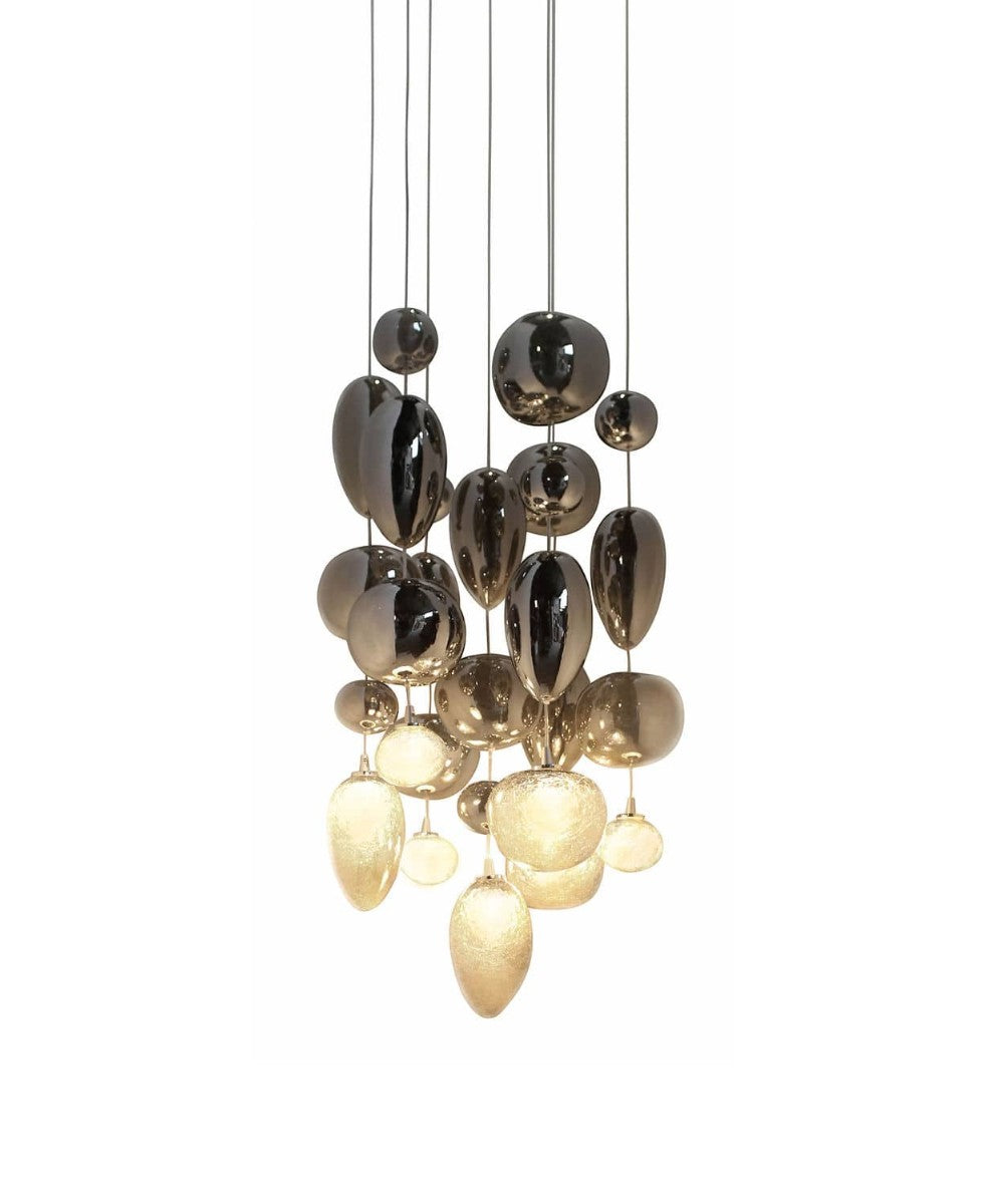 Vallons Obscurs serisinden türetilen Nuage aydınlatma armatürleri, camın yönleriyle oynayarak iç mekanları zenginleştirir. Her kabloda birkaç cam vardır, ancak yalnızca sonuncusunun bir ışık kaynağı vardır. Bu konfigürasyon, seçilen renklere ve bunların düzenine bağlı olarak benzersiz bir yansıma ve şeffaflık etkileşimi sağlar.