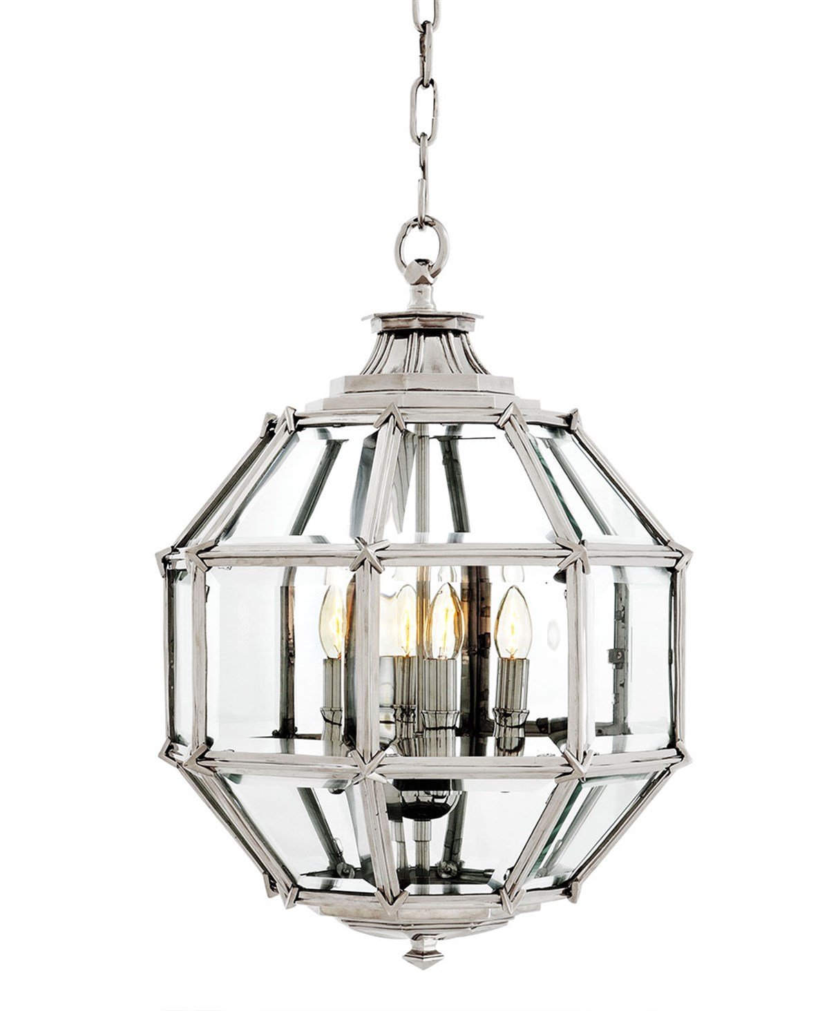Nikel / eskitme pirinç / antik kaplama Şeffaf cam Çap: 43 cm Yükseklik: 63 cm Ampul Adedi: 4 Ampul Gücü: 4 x 40W Ampul Türü: E14 Menşei Hollanda. Fiyatlarımıza ampul dahildir.