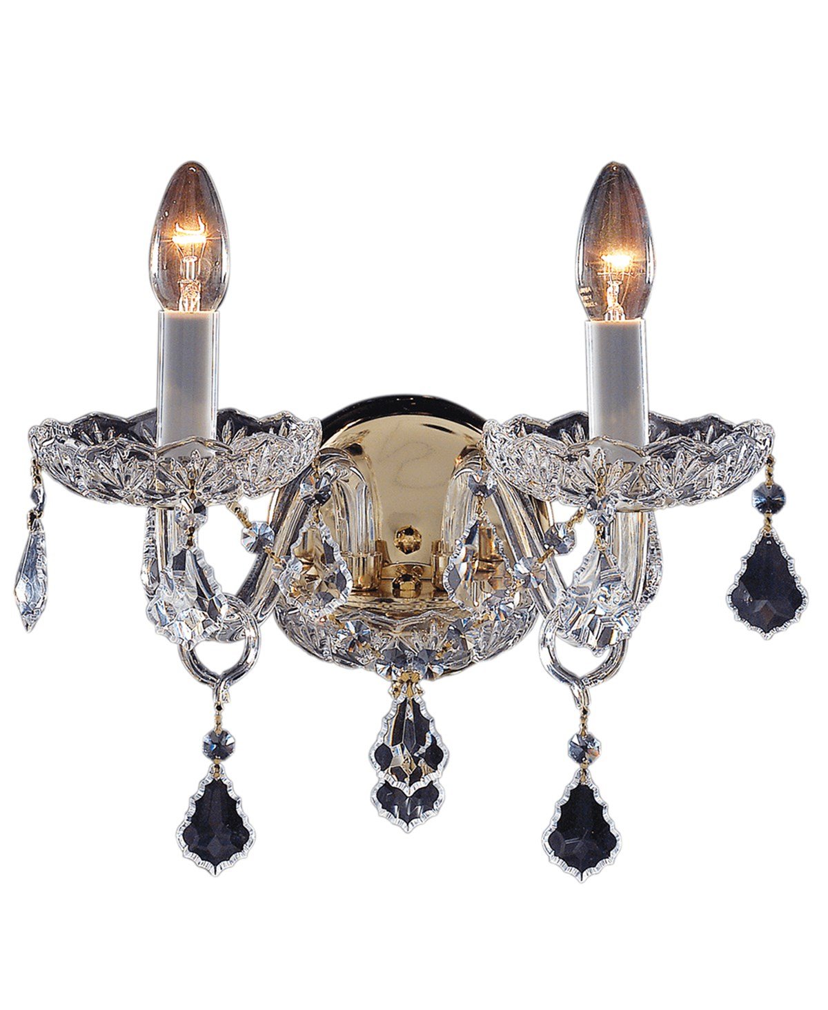 Parlak altın metal aksamı Şeffaf Bohemia kristali Genişlik: 30 cm Yükseklik: 25 cm Ampul Adedi: 2 Ampul Gücü: 2 x 40W Ampul Türü: E14 Menşei İspanya. Fiyatlarımıza ampul dahildir.