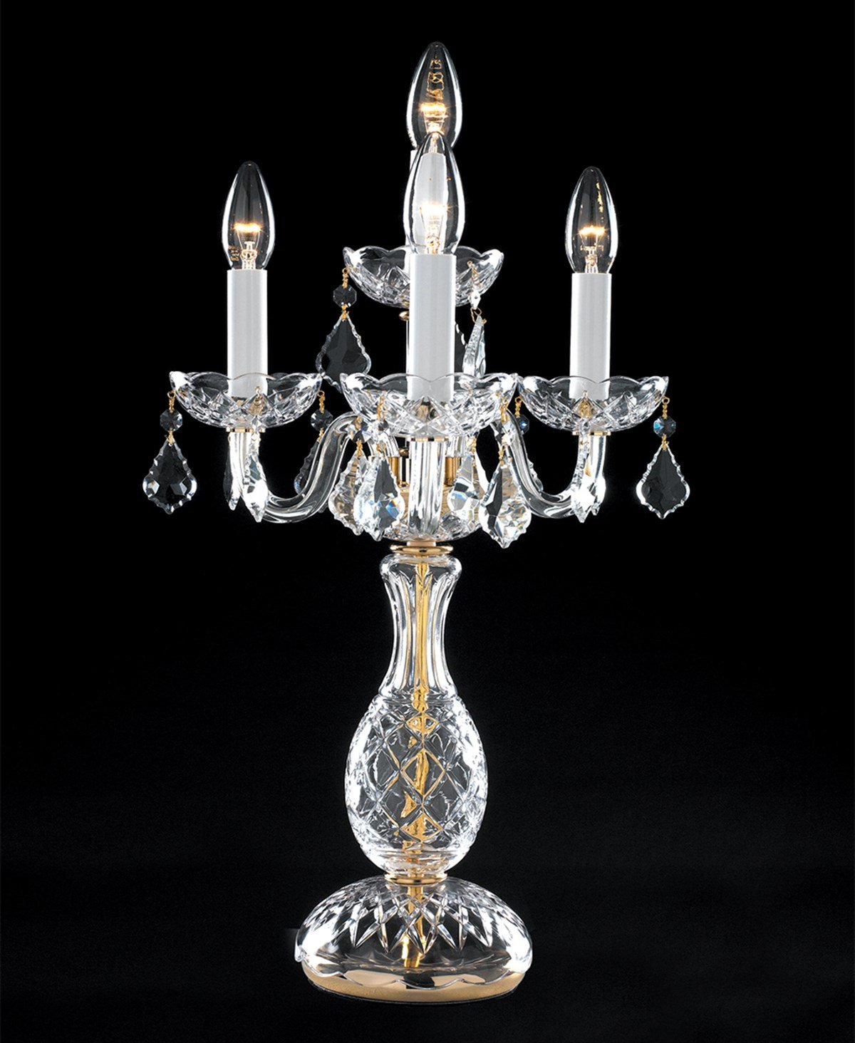 Parlak altın metal aksamı Şeffaf Bohemia kristali Genişlik: 50 cm Yükseklik: 30 cm Ampul Adedi: 4 Ampul Gücü: 4 x 40W Ampul Türü: E14 Menşei İspanya. Fiyatlarımıza ampul dahildir.