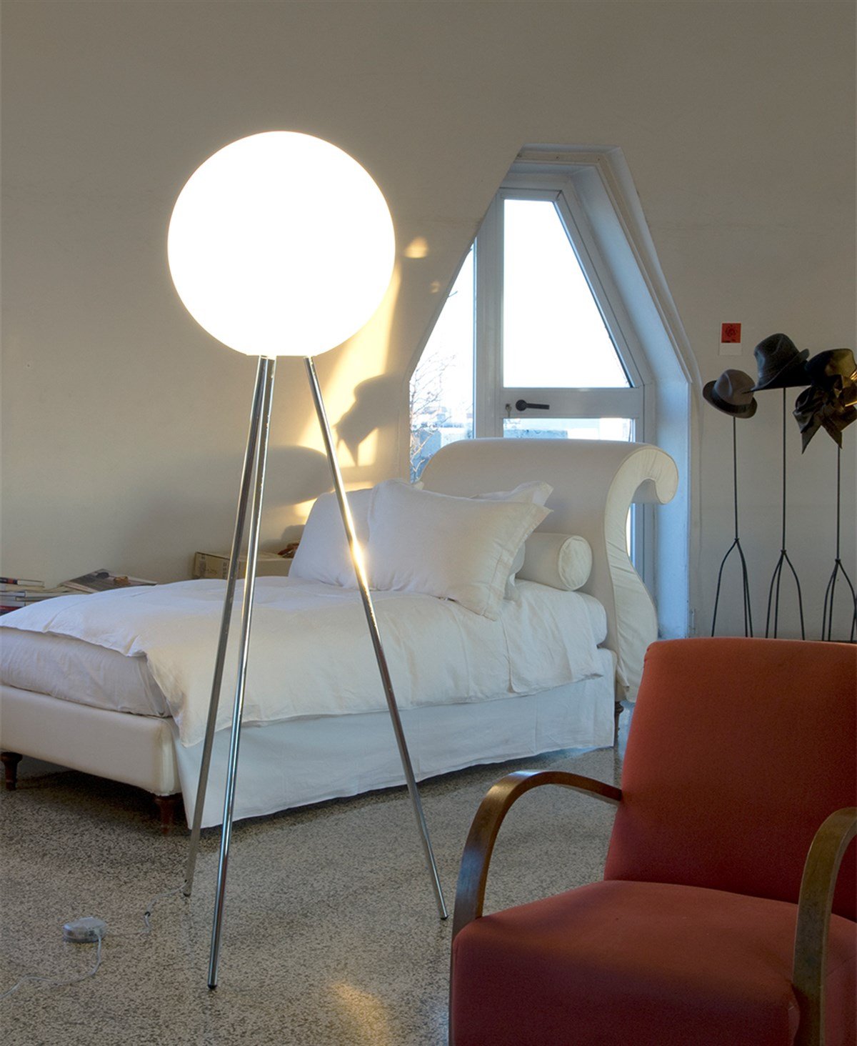 Daniela Puppa tasarımı Prima Signora lambader Parlak krom metal aksamı ve beyaz opal cam Çap: 50 cm Yükseklik: 180 cm Ampul Adedi: 1 Ampul Gücü: 1 x 205W (HA) Ampul Türü: E27 Menşei İtalya. Fiyatlarımıza ampul dahildir.