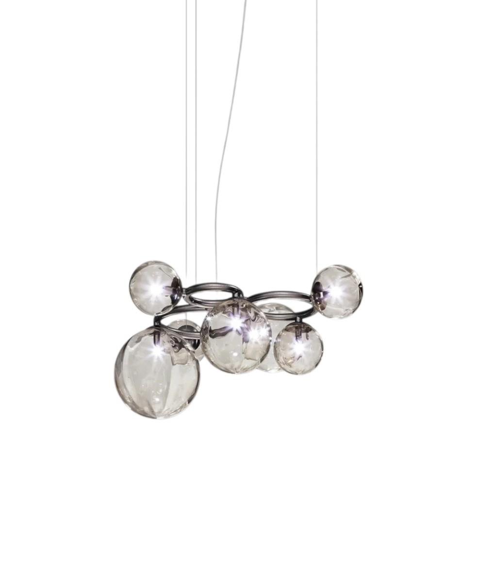 Puppet Ring koleksiyonunun bu modelinin ayırt edici özelliği, farklı dizilimlerle birleştirilebilen ve üfleme cam form sayesinde yapıyla bütünleşen, üç farklı boyuttaki cam kürelerin yerleştirilebileceği bir zırh oluşturan, çapı artan üç halkadır. Estetik açıdan hafif ve zarif olan Puppet Ring, cam ve metali bir araya getiriyor.