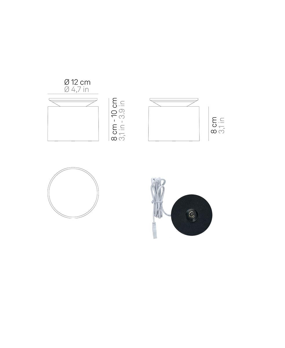 Kablosuz, şarj edilebilir, pilli masa lambası. Lambanın üst kısmına bastığınızda yukarı kalkar ve ışık yanar. Kapatmak için tekrar aşağı bastırmanız yeterlidir. Tabanın altında, lambanın üst kısmı yukarı kalktığında ışığı açmanızı, yoğunluğunu ayarlamanızı ve renk sıcaklığını seçmenizi sağlayan bir dokunmatik kontrol bulunur.