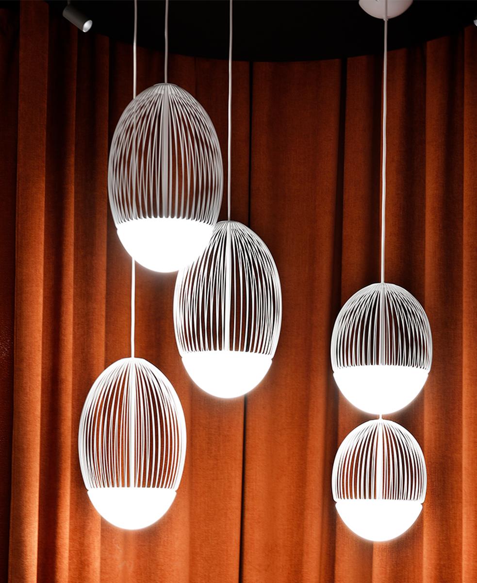 Şu anda yalnızca sarkıt versiyonu mevcut olan lamba aslında tek başına, çiftler halinde veya gruplar halinde kullanılabilir.