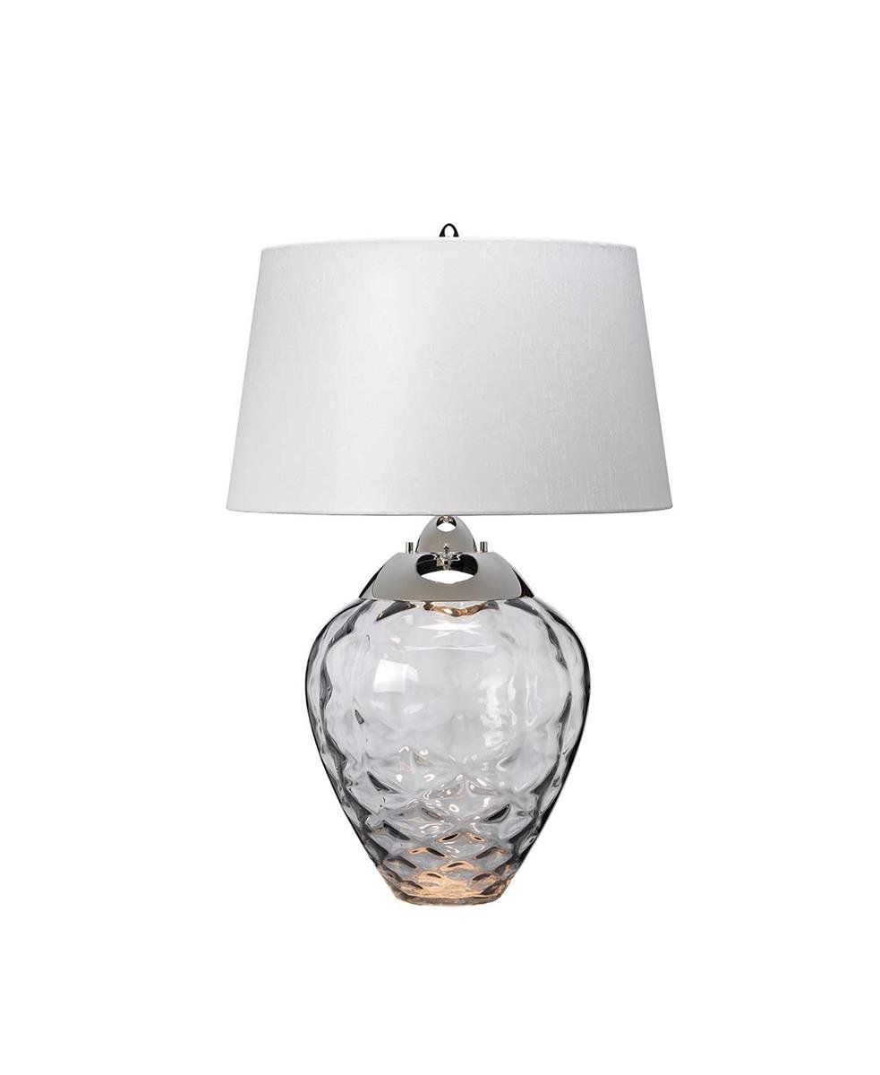 Samara'nın dokulu üfleme camı, klasik cilalı nikel metal işçiliği ve güzel el yapımı kumaş tonları bir araya gelerek göz alıcı ve muhteşem bir masa lambası oluşturuyor.