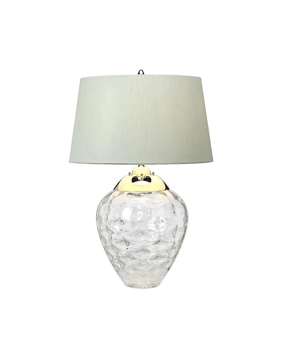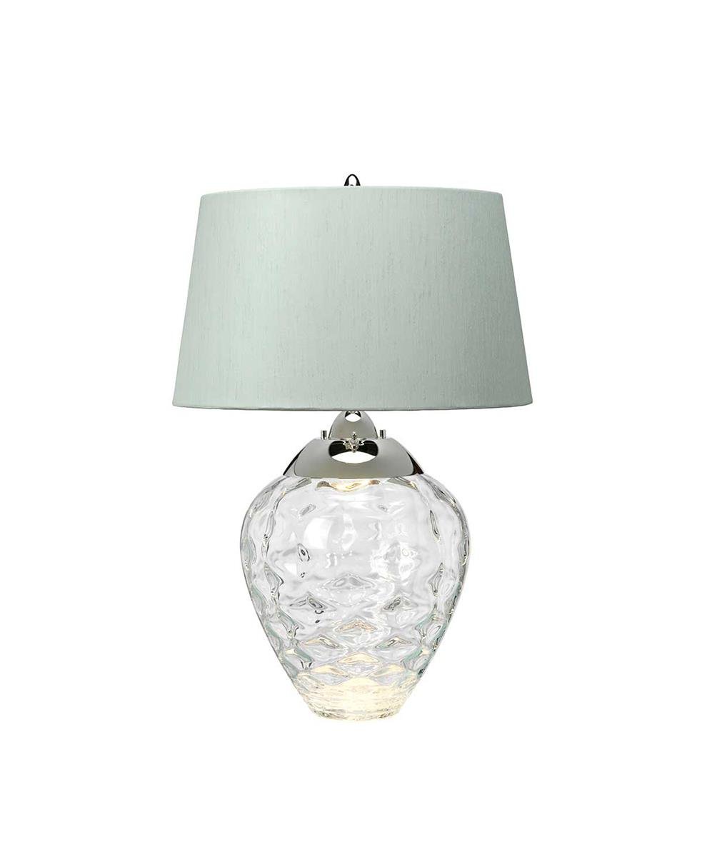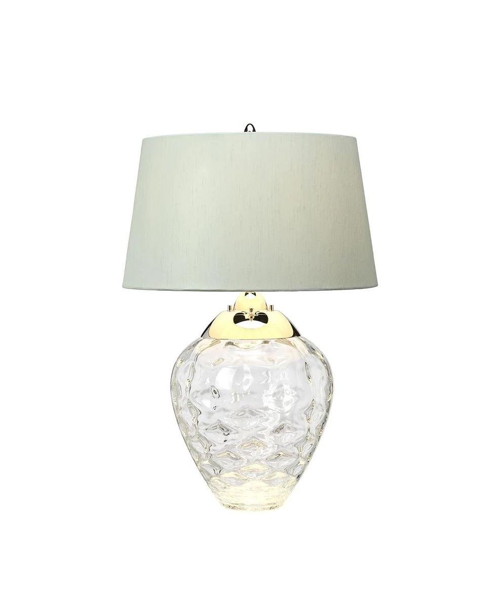 Samara'nın dokulu üfleme camı, klasik cilalı nikel metal işçiliği ve güzel el yapımı kumaş tonları bir araya gelerek göz alıcı ve muhteşem bir masa lambası oluşturuyor.