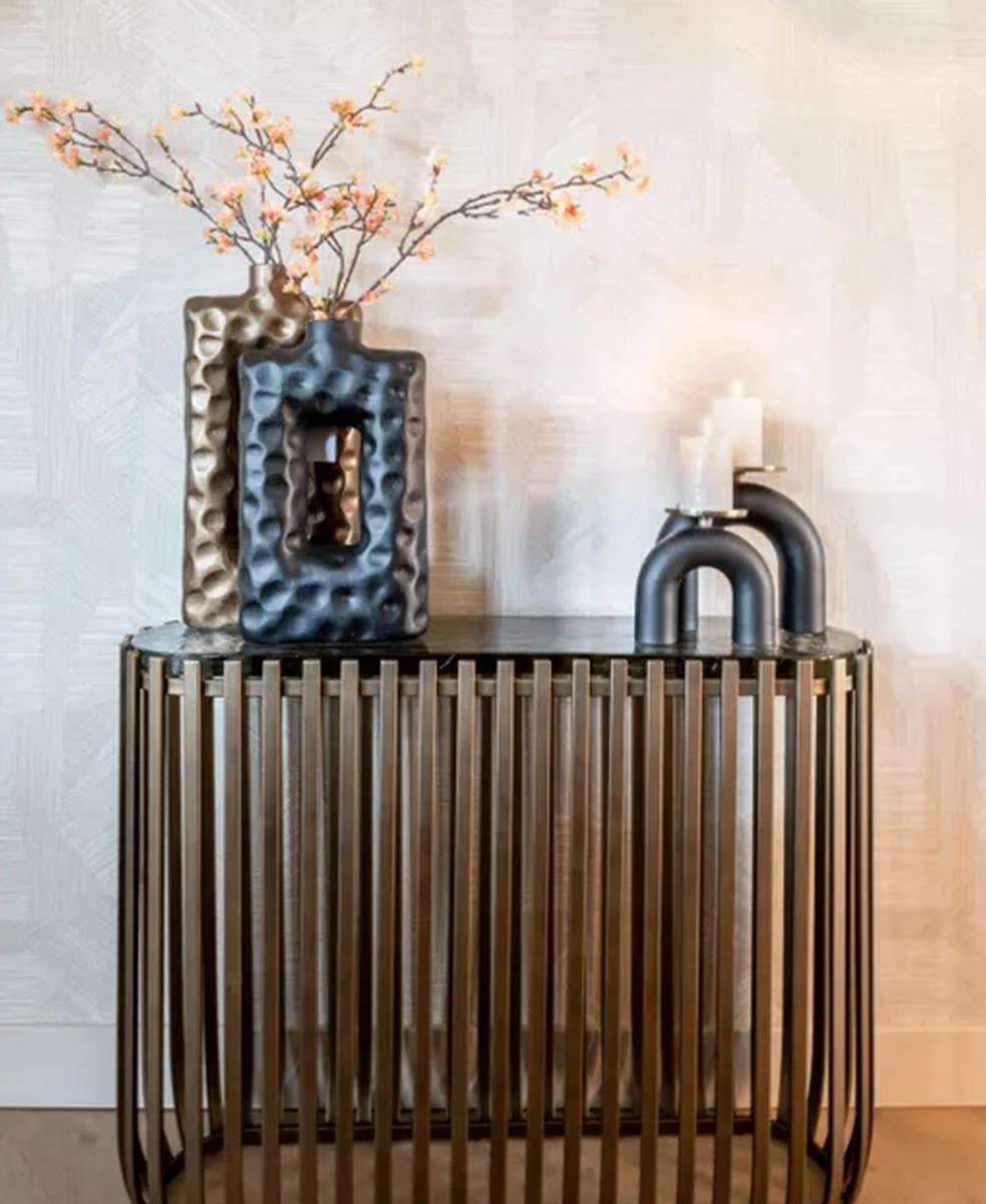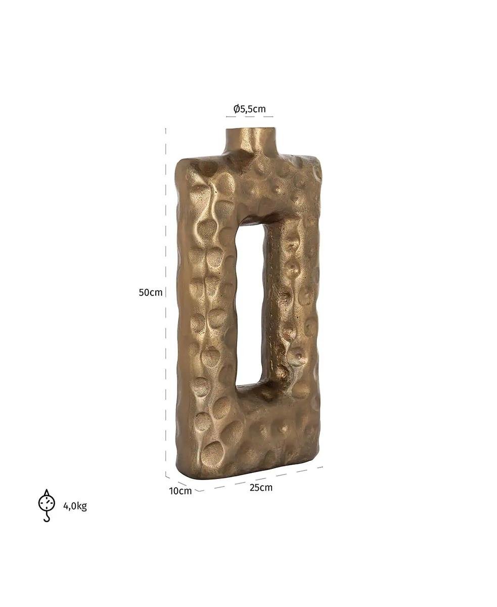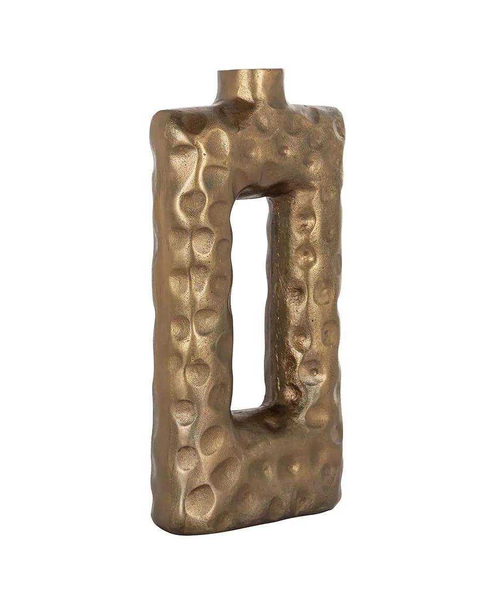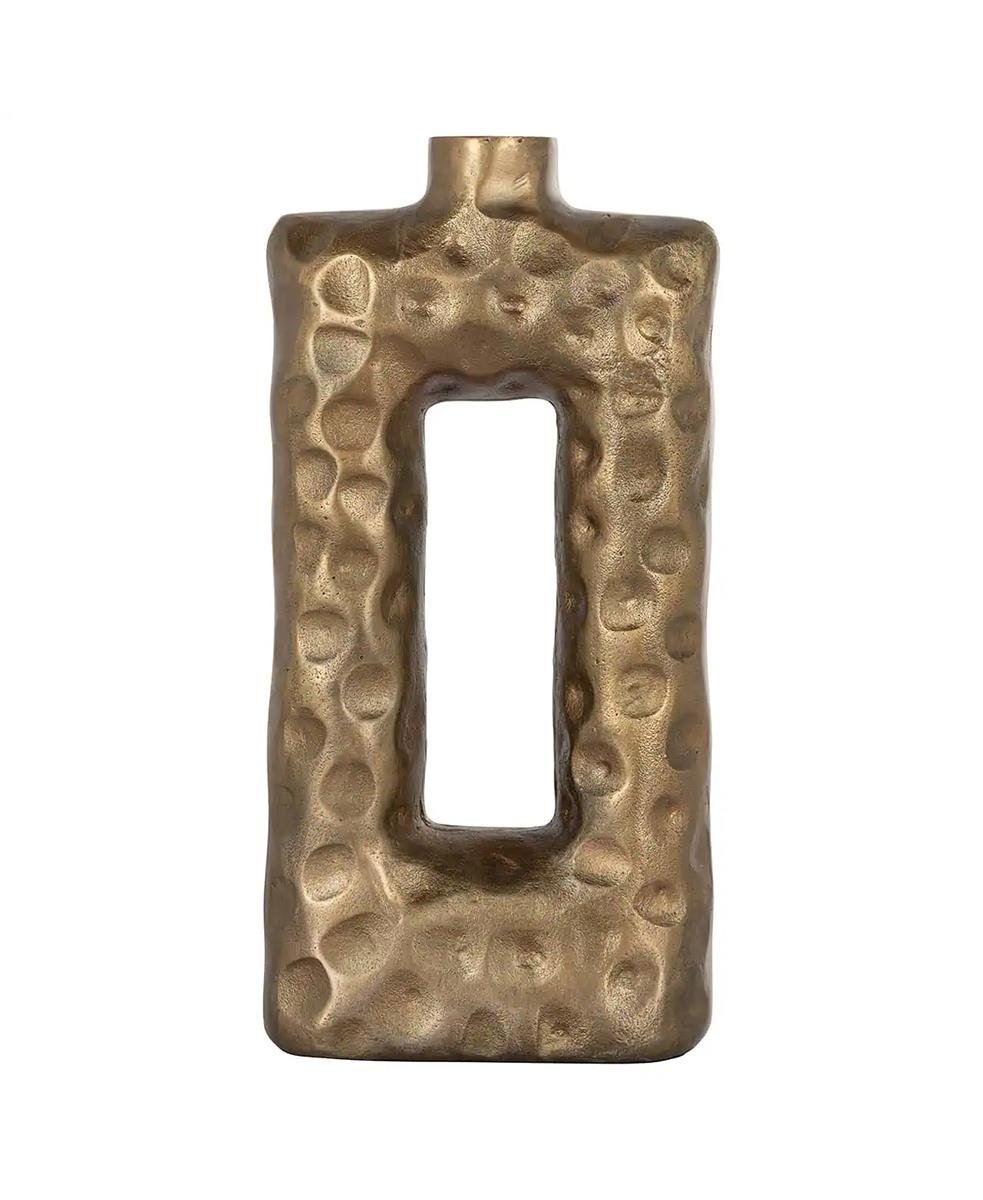Vazo, ortasında delik bulunan dikdörtgen bir şekle sahiptir ve bu da vazoya benzersiz bir görünüm kazandırır.