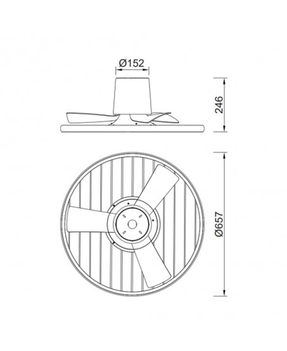 Fanın hızı, ışık çıkışı ve ışığın ışık rengi (sıcak beyazdan soğuk beyaza) sürekli olarak kontrol edilebilir.