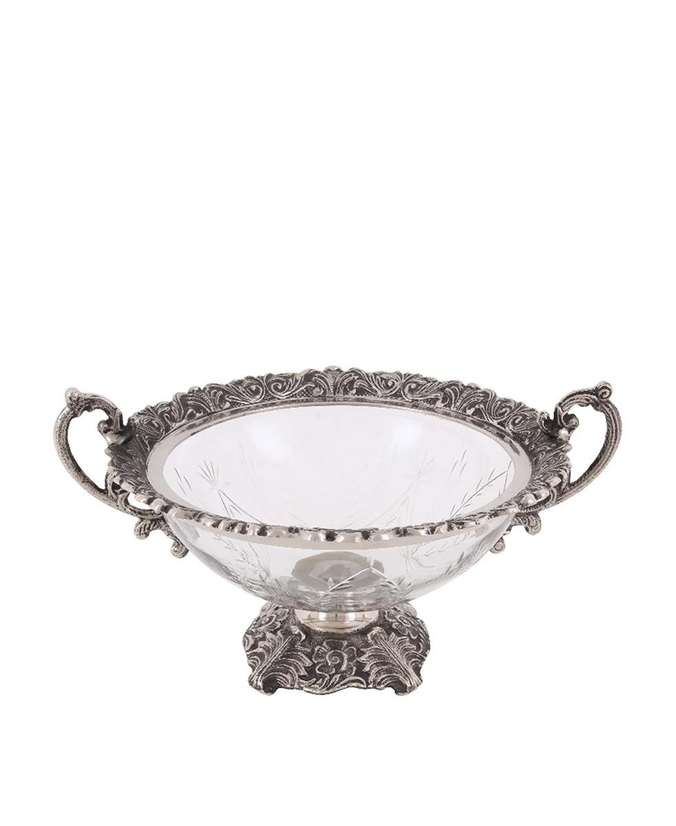 Bu bakır ve cam sunum kasesi iç mekan için dekoratif bir gösteri parçasıdır.