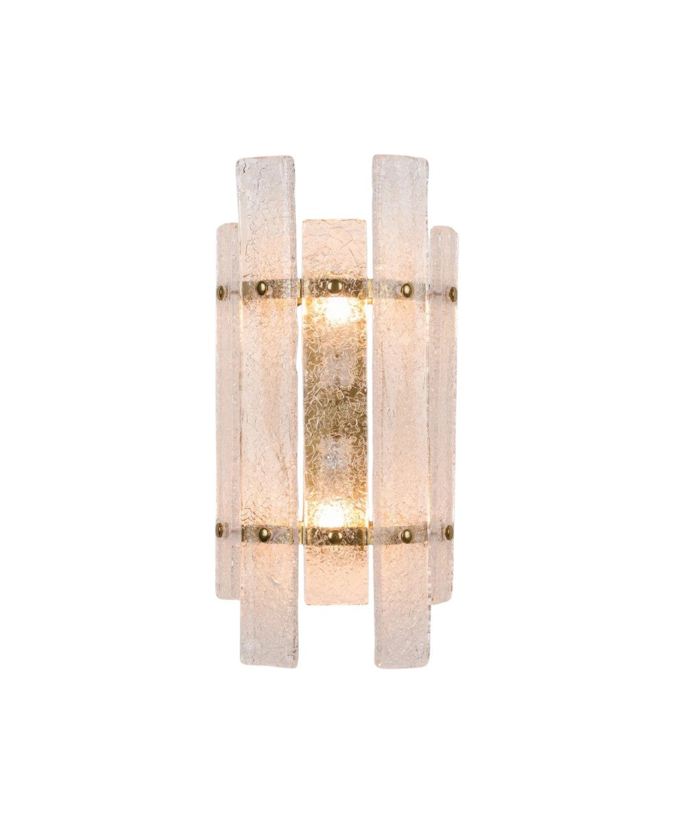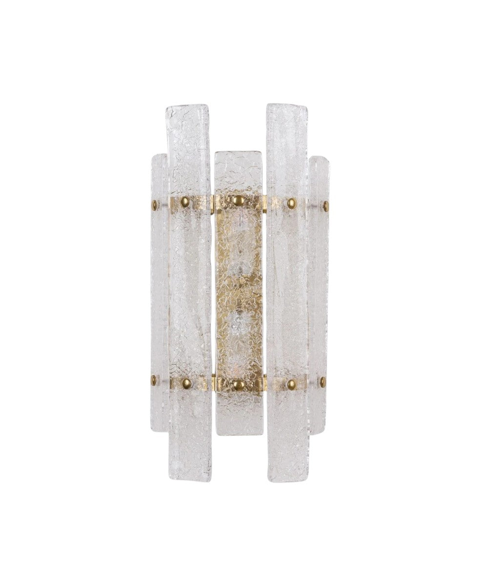 Art Deco esintili bu aplik, şık cam panellere ve minimal pirinç aksesuarlara sahiptir.