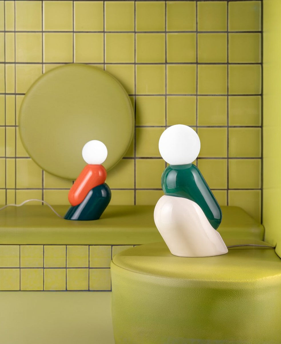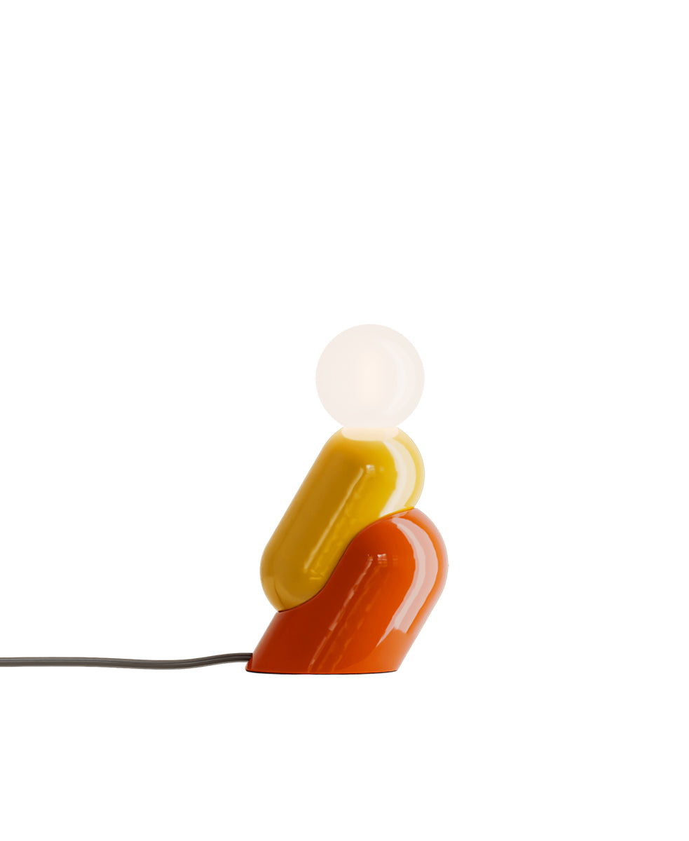 Tata; sadece bir nesne olmaktan öte, gerçek bir yol arkadaşı olan, sessiz bir tatlılıkla mekanı dolduran küçük, ışık saçan bir obje. İki kusursuzca iç içe geçmiş formdan oluşan seramik gövdeden oluşuyor. Üst kısmında, üfleme cam bir küre, ışığı yumuşak bir şekilde dağıtıyor. Zengin, canlı renkler seramiğin kalitesini artırarak her parçayı küçük bir el işçiliği eseri haline getiriyor. Tata sadece aydınlatmakla kalmıyor, bizimle birlikte yaşıyor, evde samimi bir obje, küçük bir ışık ve renk tılsımı haline geliyor.